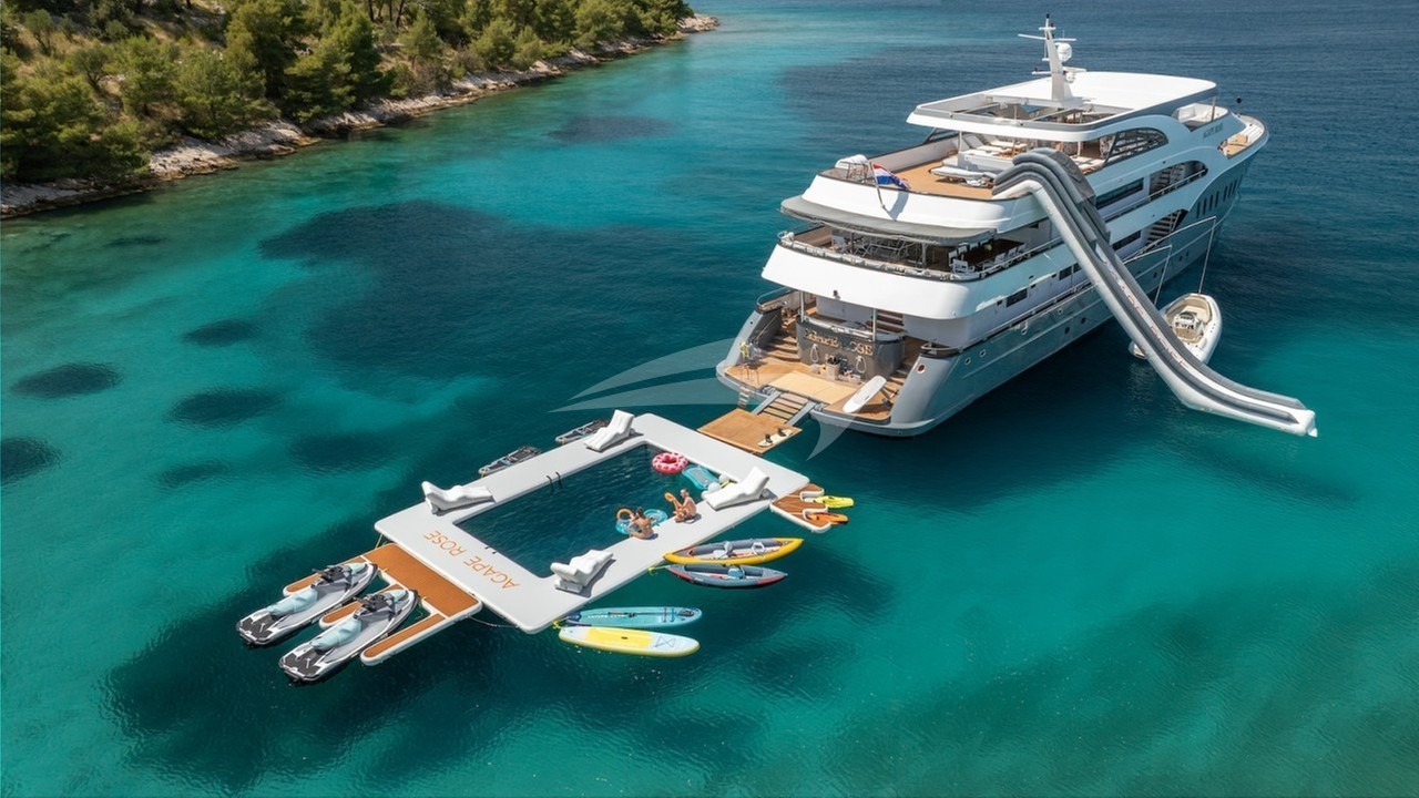 Experience the epitome of luxury and adventure aboard the AGAPE ROSE, a stunning 158ft (48.3m) custom motor yacht available for charter in the East Mediterranean. Built in 2017 and recently refitted in 2021, this Croatian-flagged vessel offers an unparalleled blend of comfort, style, and cutting-edge amenities for up to 24 discerning guests.