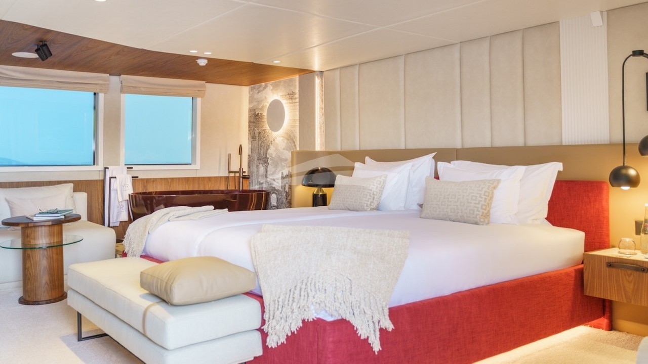 Accommodations aboard AGAPE ROSE are nothing short of opulent. The yacht features 12 luxurious suites, including a lavish primary suite and 11 equally impressive double cabins, all with en-suite bathroom facilities. This spacious layout ensures privacy and comfort for every guest throughout their journey.
