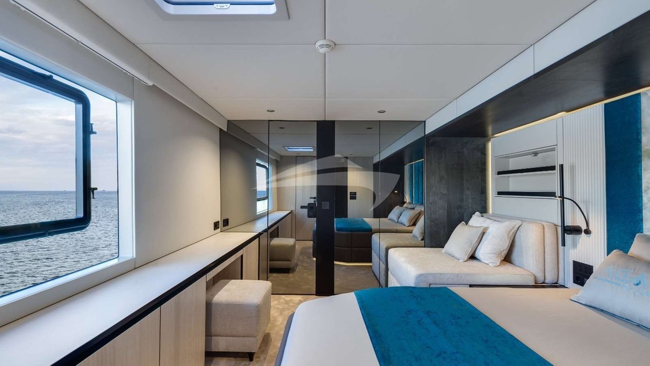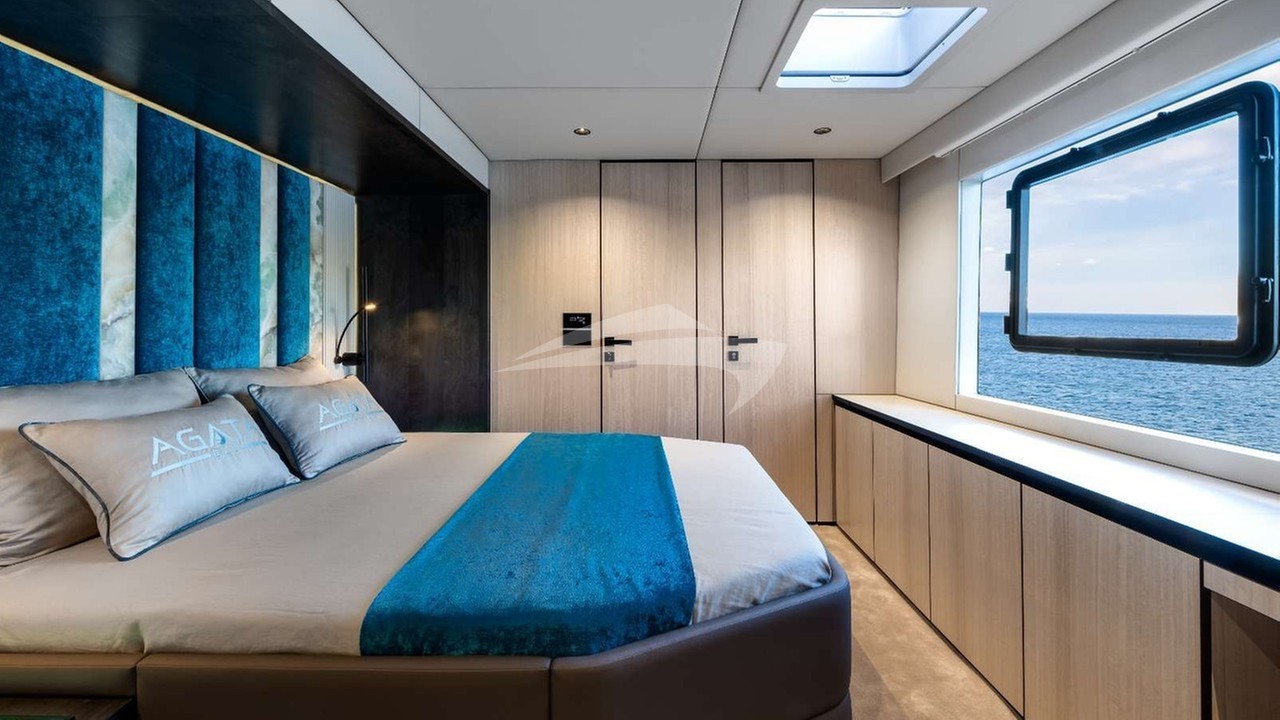 Agata Blu Yacht Charter is a 74' superyacht built by Sunreef Yachts in 2023. She sleeps 10 and holds 4 crew and is located in East Mediterranean and East Mediterranean. She can be booked for a private luxury charter at a rate of $52,346 per week. Please check with your Denison Charter Specialist for more info.