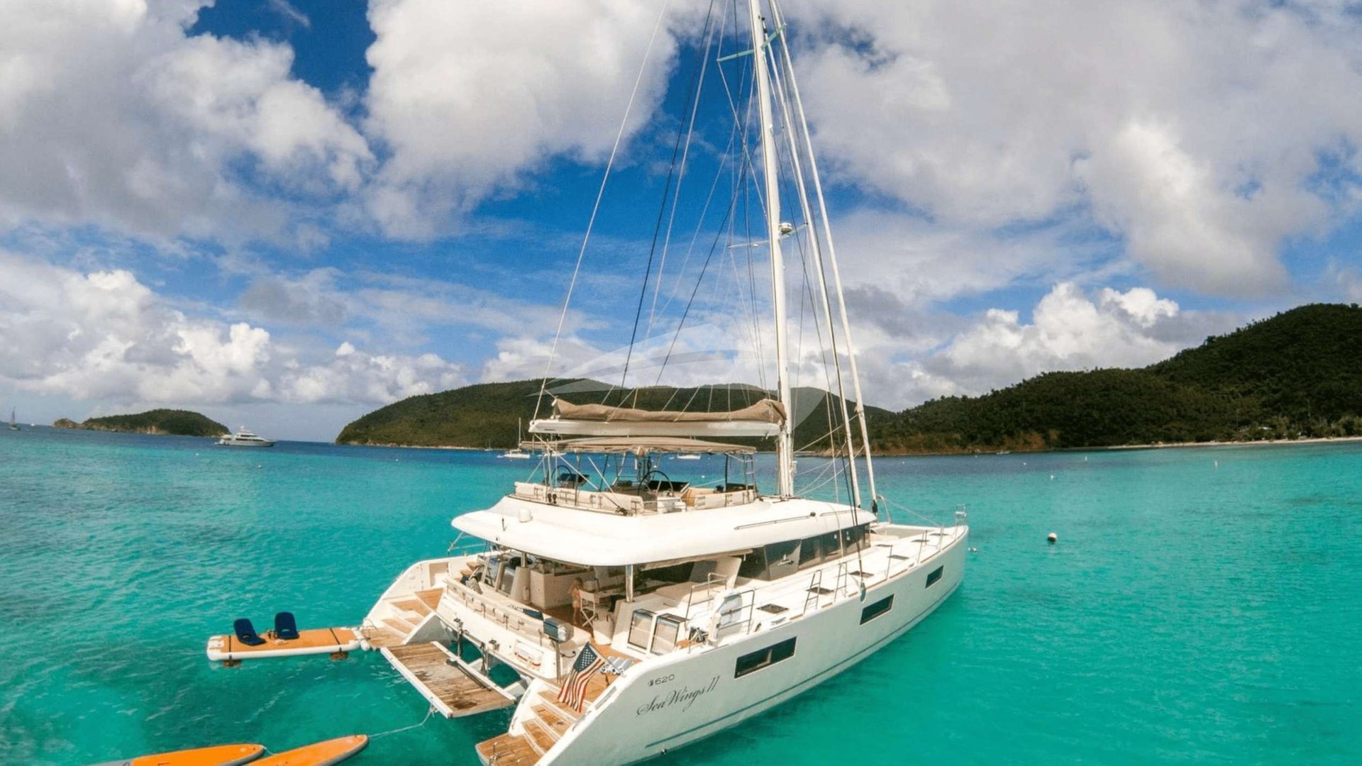 Akasha Yacht Charter is a 62' superyacht built by Lagoon in 2018. She sleeps 8 and holds 2 crew and is located in Caribbean and Caribbean. She can be booked for a private luxury charter at a rate of $36,000 per week. Please check with your Denison Charter Specialist for more info.