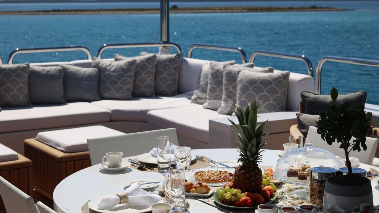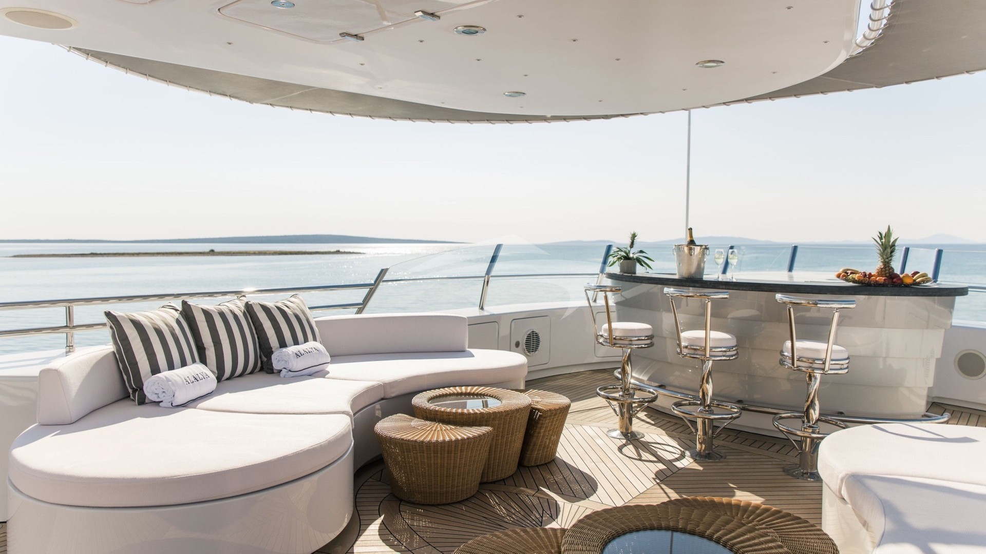 With her top-flight crew, Michelin-trained chef, and great features including a Jacuzzi and beach club, ALALYA has all the fine ingredients of the perfect charter yacht. As an added bonus, she has not been chartered before so is ready for guests in brand-new condition, particularly after a 2020 refit that included engineering upgrades and a gleaming new paint job. It is rare to find a charter yacht in such pristine condition, making ALALYA a top charter opportunity for the upcoming summer season. Her main key features are: