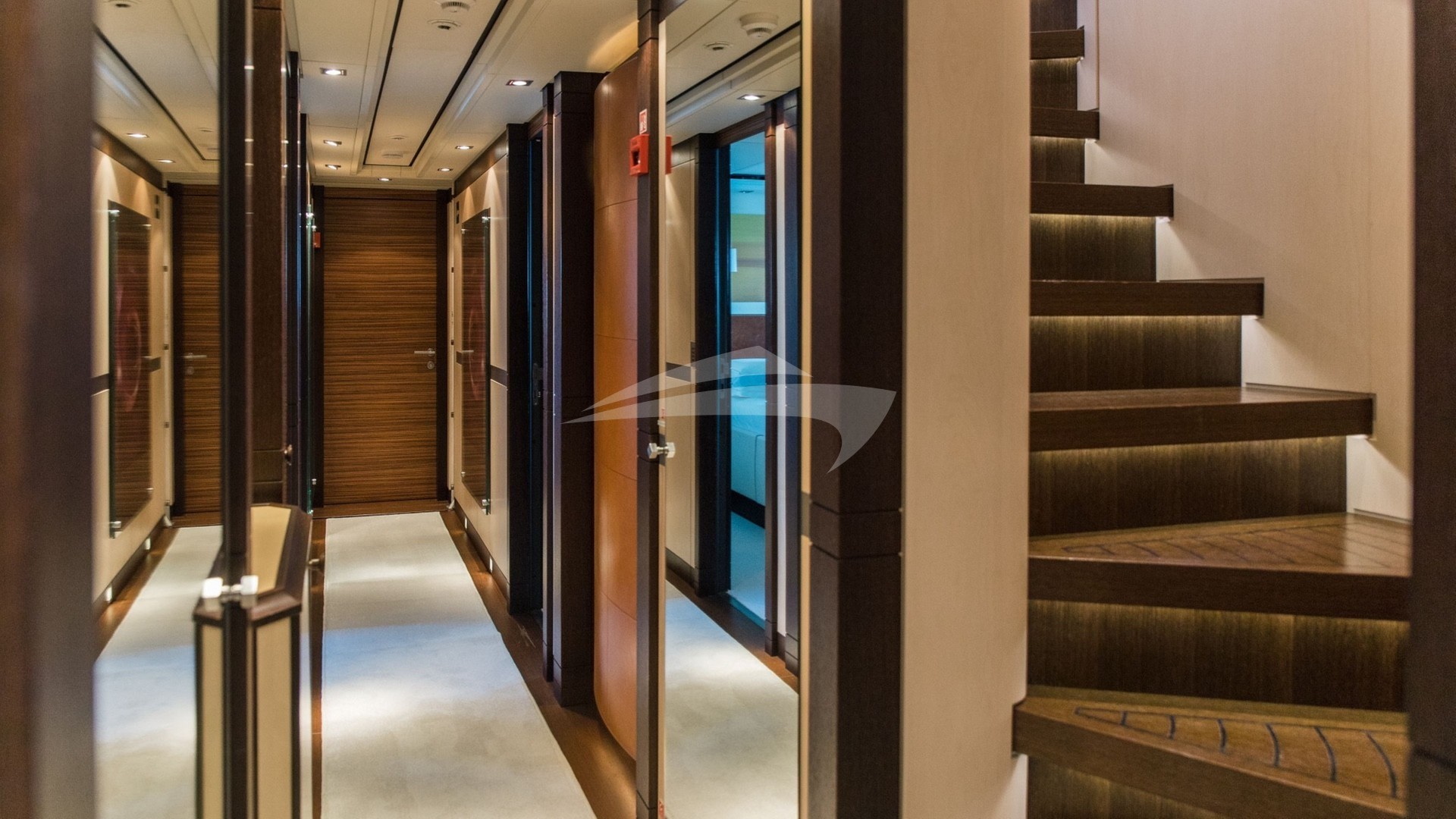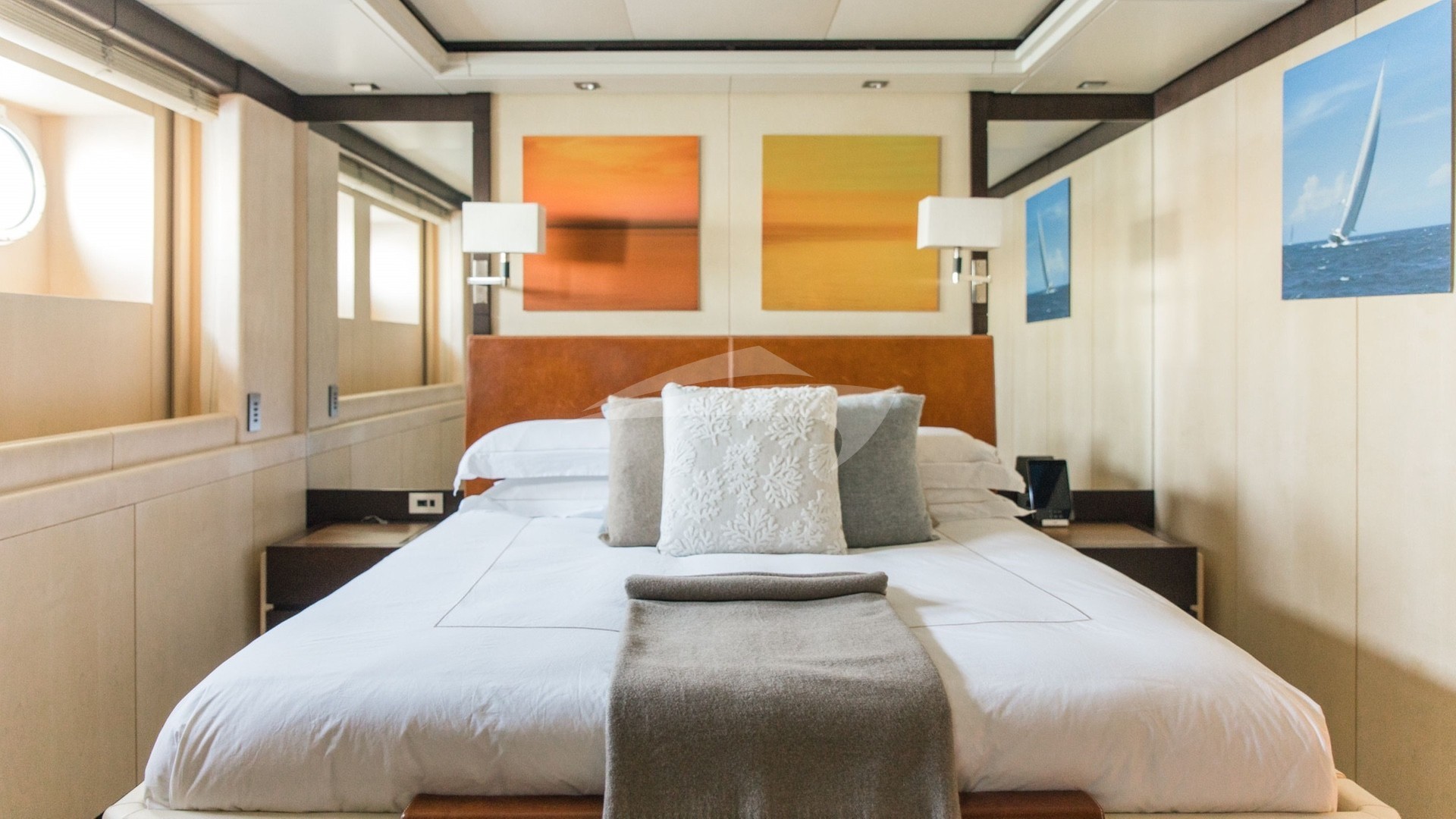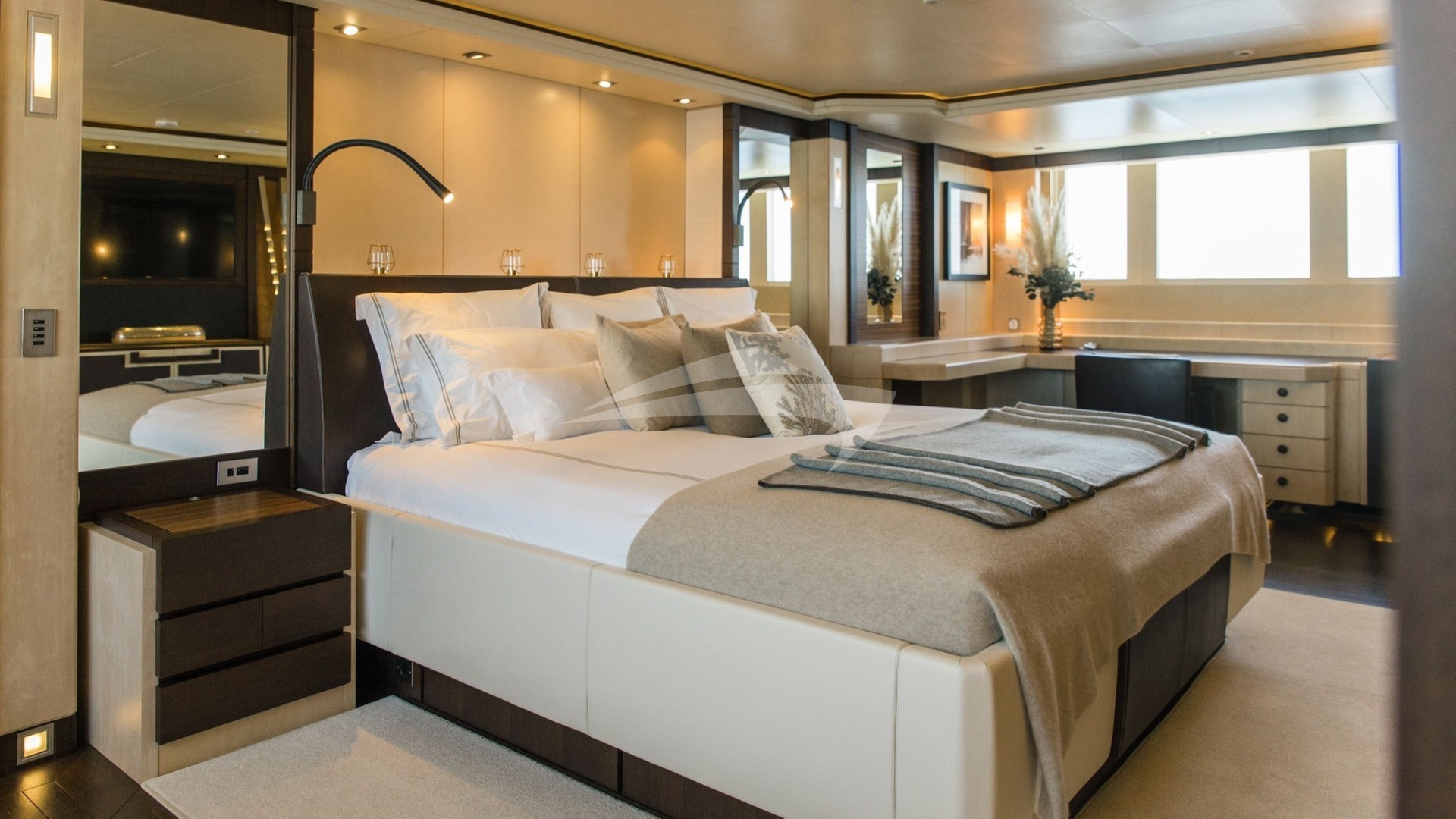 ALALYA's thoughtful design extends to her accommodation layout, featuring three VIP suites, a twin cabin, and a multipurpose cabin with two Pullman beds, all with en-suite facilities. This versatile configuration makes her an excellent choice for families or groups of friends seeking a luxurious Mediterranean getaway.