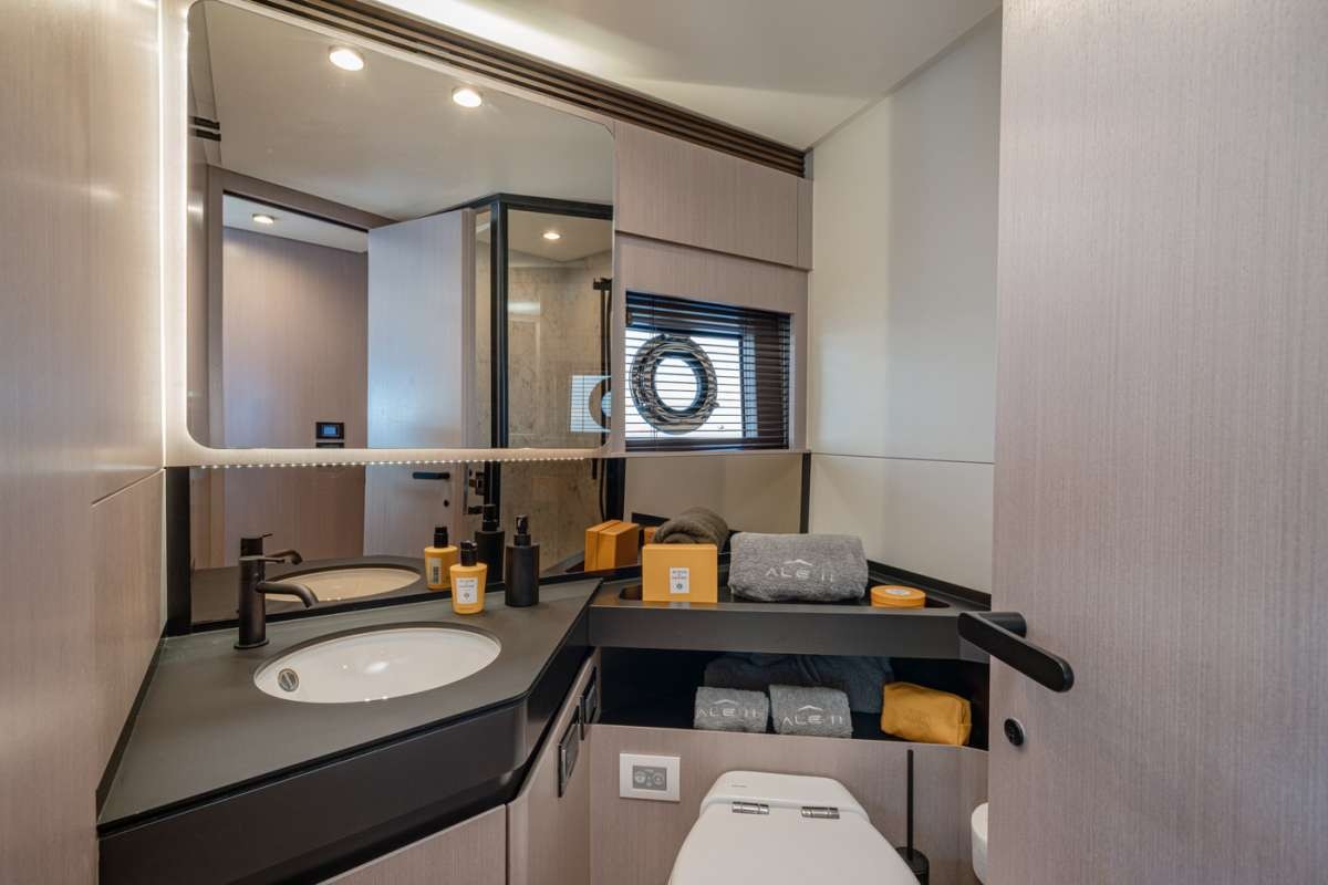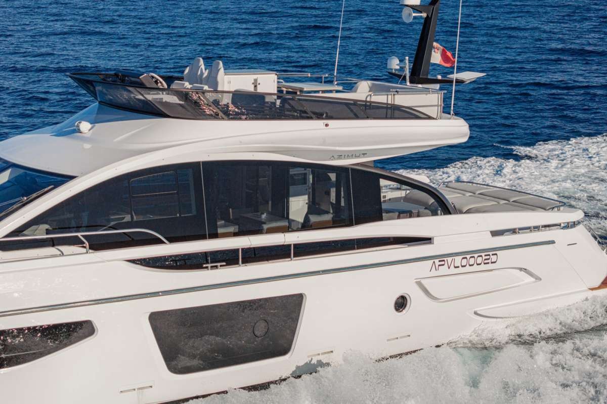 Ale Ii Yacht Charter is a 72' superyacht built by Azimut in 2024. She sleeps 8 and holds 3 crew and is located in W. Med -Naples/Sicily, W. Med -Riviera/Cors/Sard. and W. Med -Naples/Sicily, W. Med -Riviera/Cors/Sard.. She can be booked for a private luxury charter at a rate of €48,000 per week. Please check with your Denison Charter Specialist for more info.