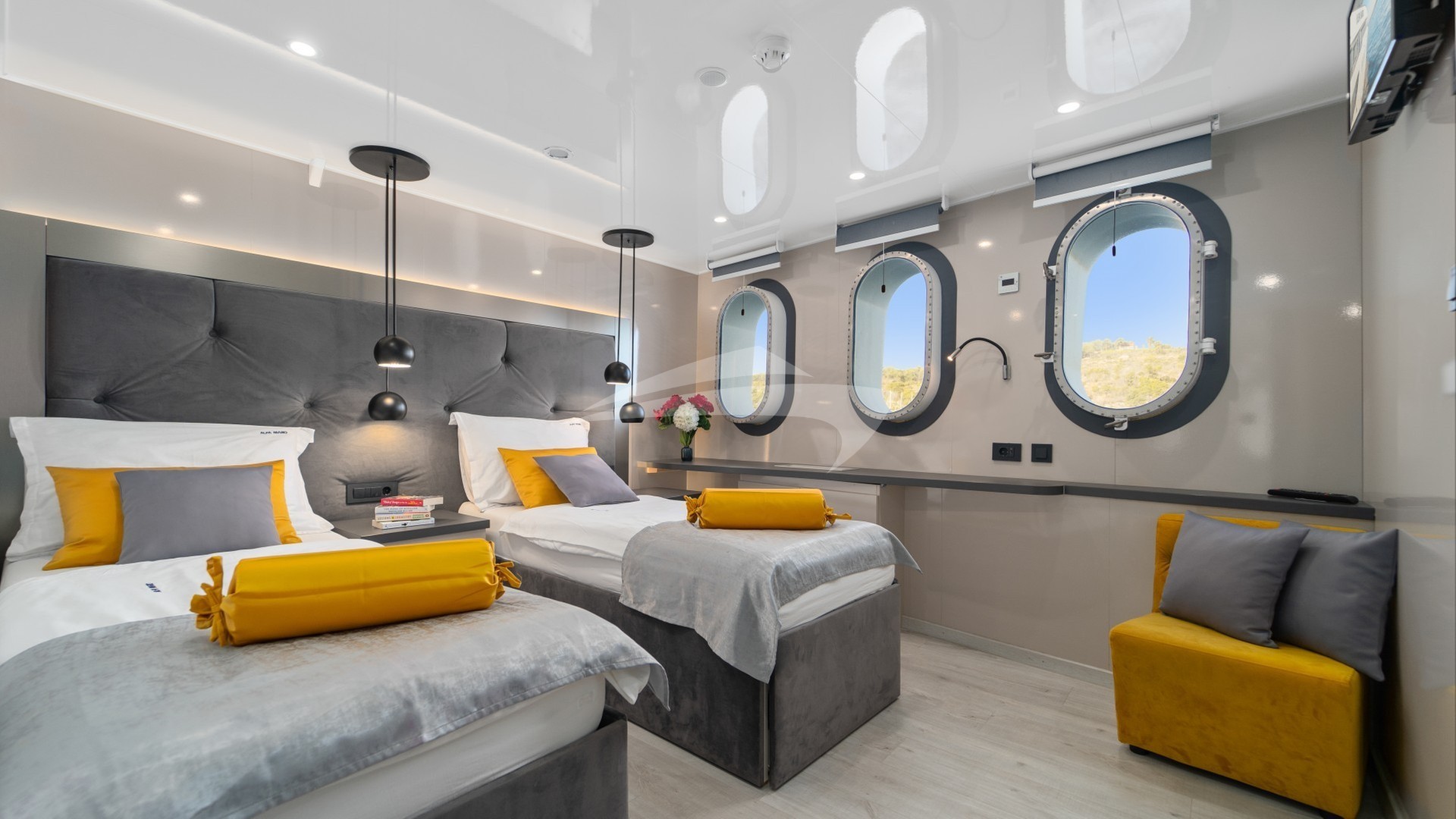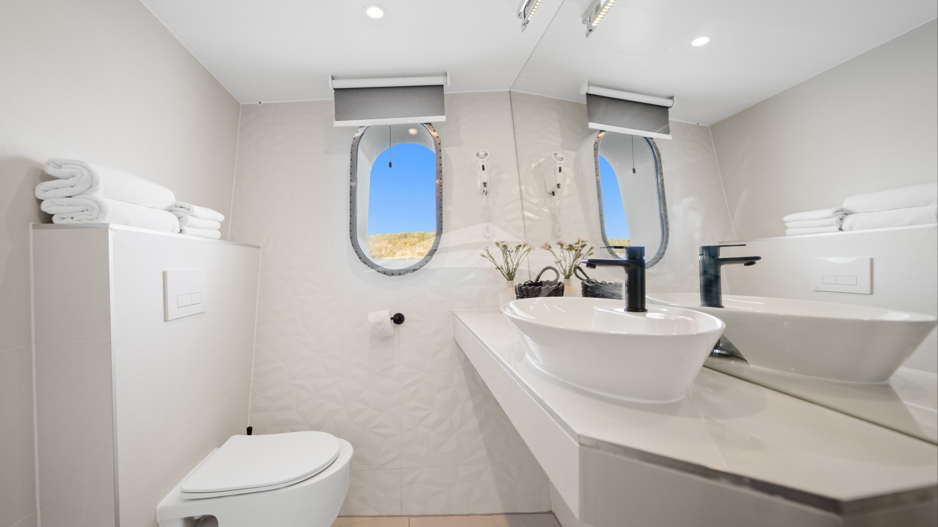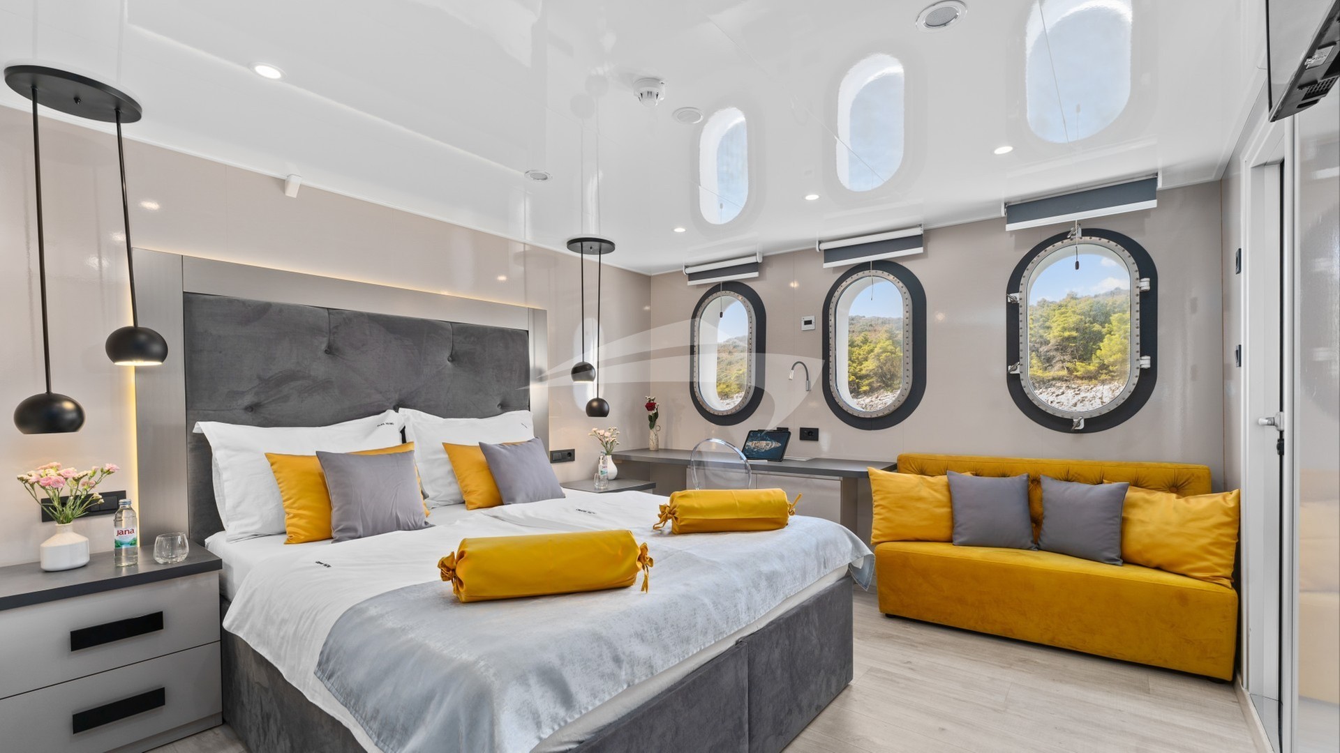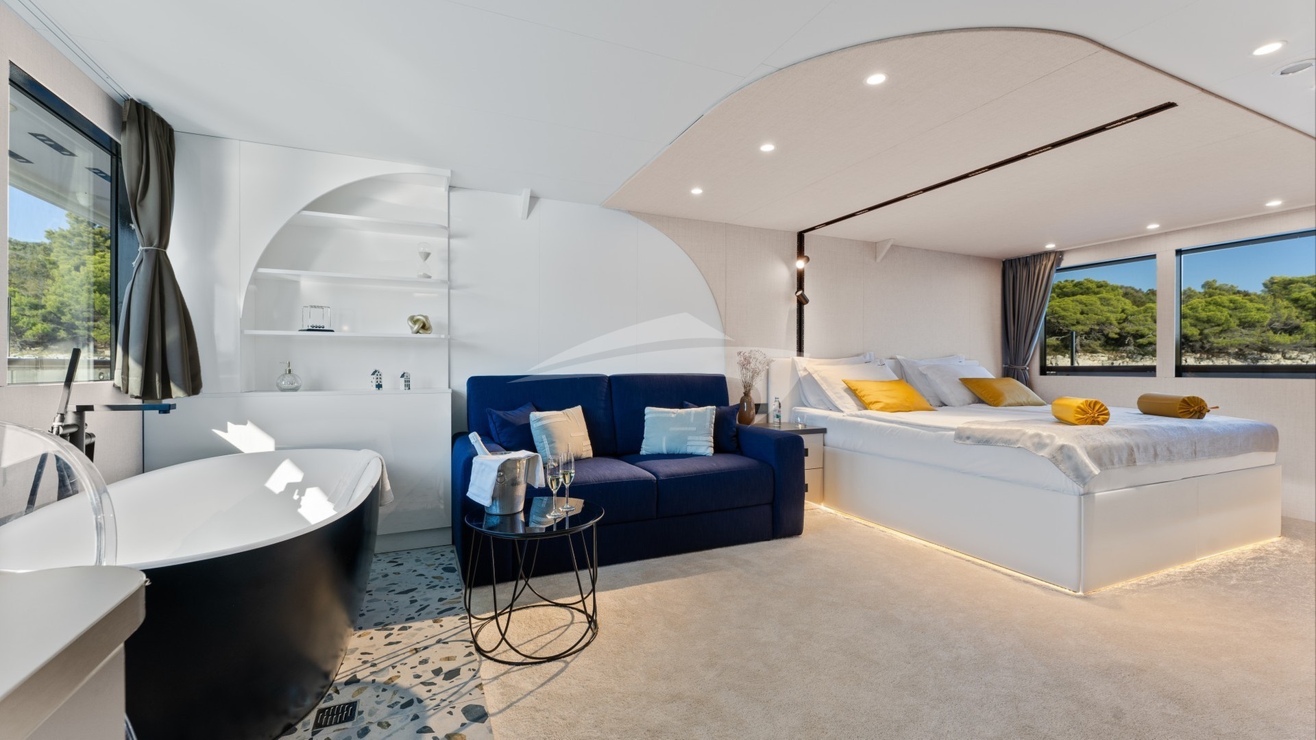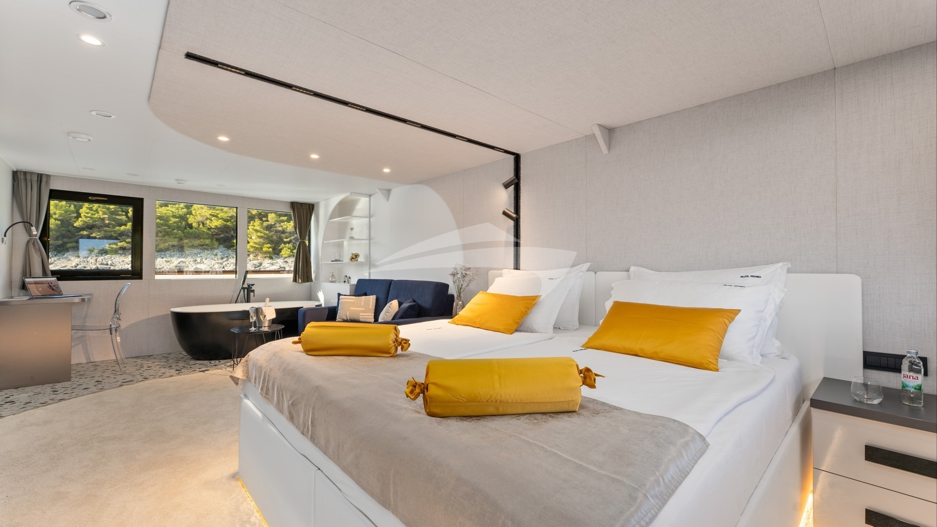 ALFA MARIO boasts an impressive capacity to accommodate up to 32 guests in 16 lavishly appointed suites, making it one of the largest Croatian yachts of its kind. The primary suite, along with 10 double cabins and 5 twin cabins, all feature en-suite bathrooms, ensuring privacy and comfort for every guest.