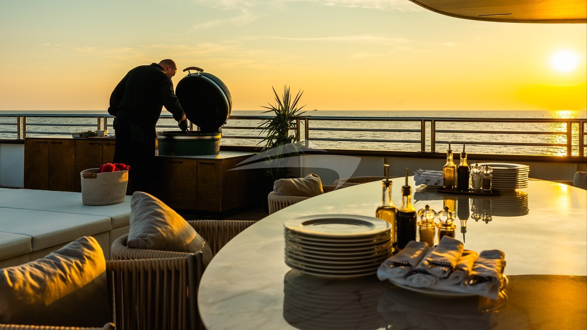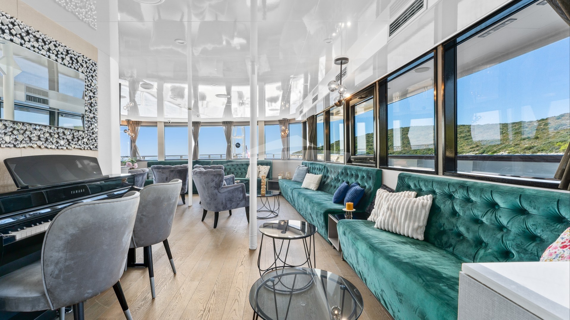 Indulge in a world of onboard amenities designed to elevate your yachting experience. Unwind in the deck jacuzzi, rejuvenate in the sauna, or maintain your fitness routine in the well-equipped gym. The yacht's entertainment options are equally impressive, with a cinema room for movie nights and a spacious lounge bar complete with a piano for elegant evenings.