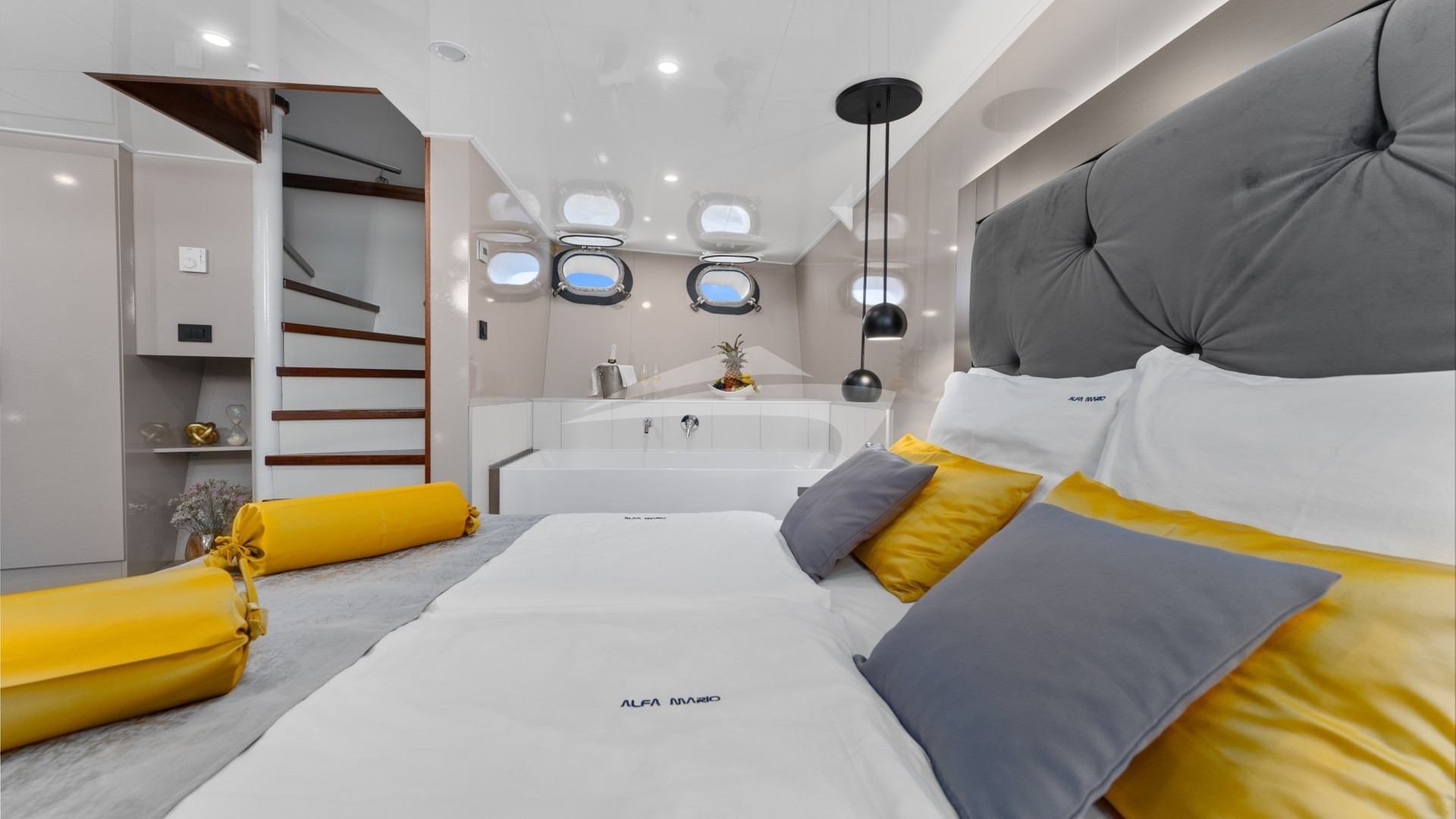 Whether you're hosting a grand celebration or seeking an intimate getaway, ALFA MARIO offers the perfect blend of luxury, performance, and comfort. With its state-of-the-art amenities, spacious deck areas, and commitment to excellence, this yacht promises an extraordinary charter experience in the stunning waters of the East Mediterranean.