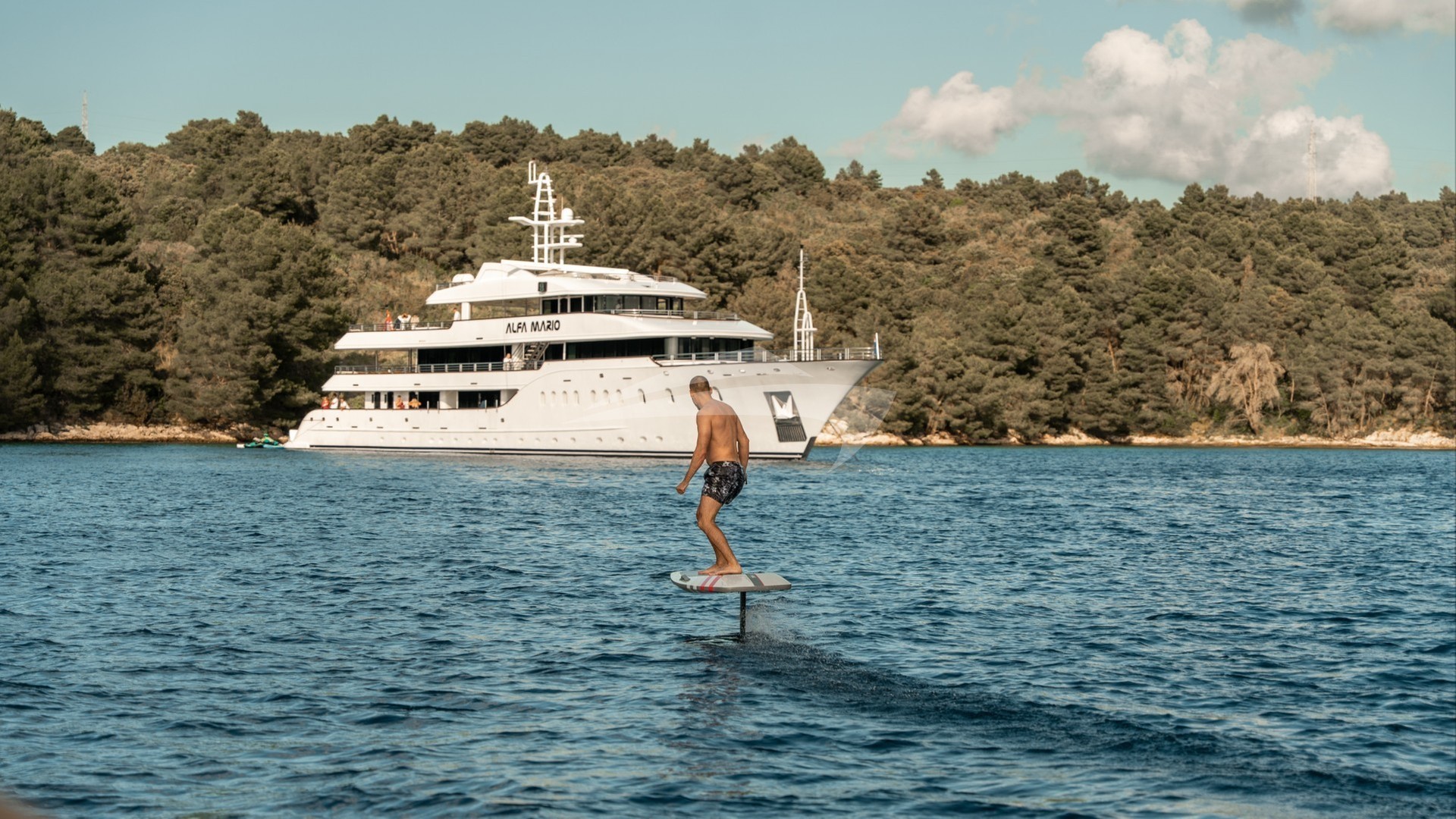 Alfa Mario carries three of the most popular recreational watercraft aboard - a jet ski, a sea bob, and an e-foil. In addition, there are two kayaks, two paddleboards, a tube and ringo ride, and water skis.