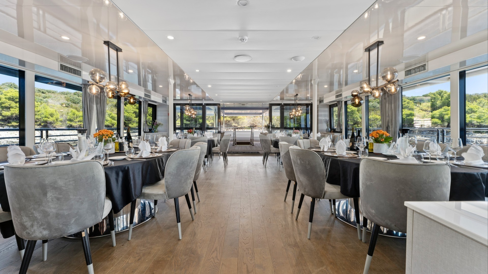 Culinary delights await you on board, with talented chefs Miloš Kiković and Dragan Lakić crafting exquisite dishes that cater to all tastes and dietary requirements. From Mediterranean specialties to international cuisine, every meal is a celebration of flavors.