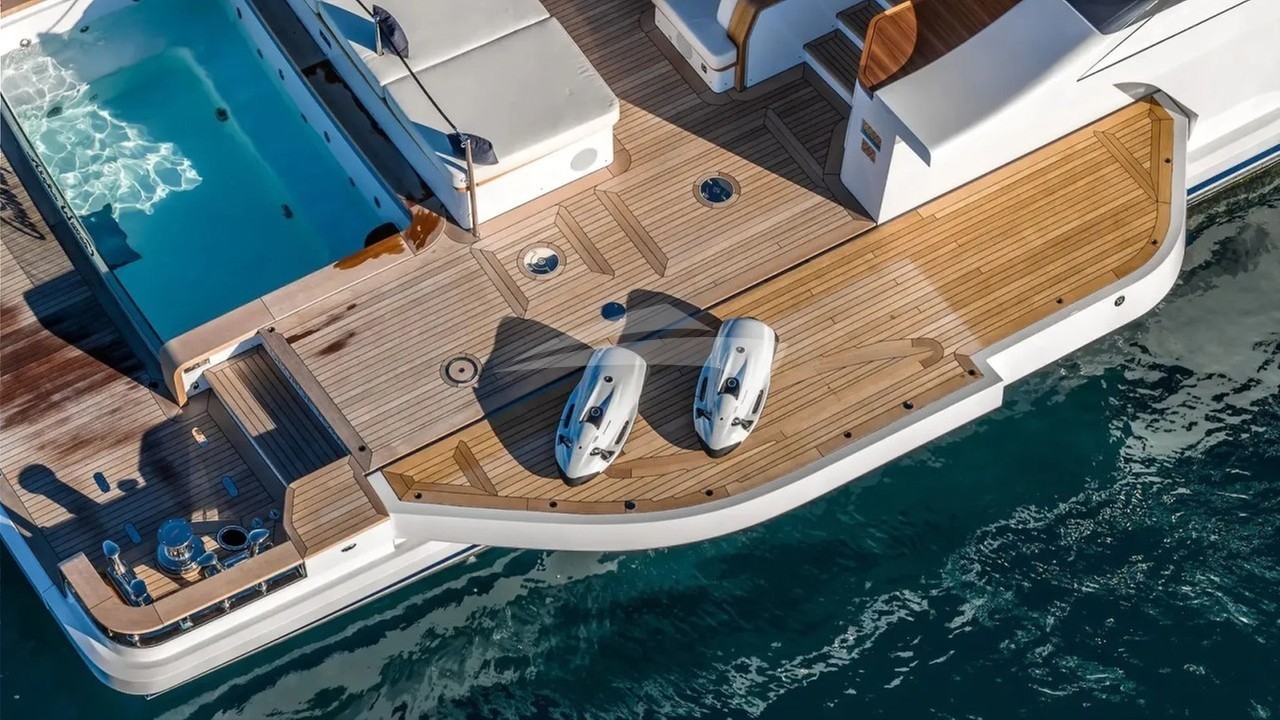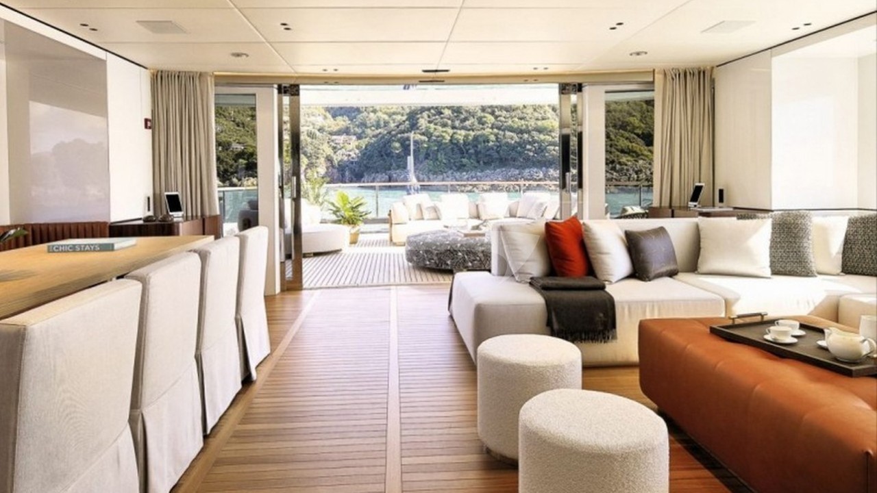 ALPHA WAVES boasts a revolutionary layout that seamlessly blends indoor and outdoor living. The yacht's piece de resistance is its awe-inspiring beach club, featuring fold-down terraces that create an expansive alfresco lounge right at the water's edge. This unique space, complete with a swimming pool, sets ALPHA WAVES apart from other charter yachts in its class.