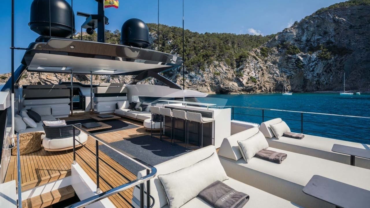 Alvium Yacht Charter is a 108' superyacht built by Custom Line in 2022. She sleeps 12 and holds 5 crew and is located in West Mediterranean and West Mediterranean. She can be booked for a private luxury charter at a rate of $162,885 per week. Please check with your Denison Charter Specialist for more info.