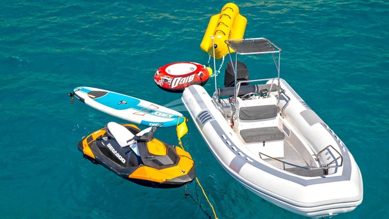 Water enthusiasts will revel in ALWAYS BELIEVE's impressive array of toys and amenities. From the swim platform, access a 7m tender, jet skis, paddleboards, and towable inflatables like banana boats and tubes. Diving and snorkeling gear are also available for underwater adventures in the crystal-clear waters of the West Mediterranean.