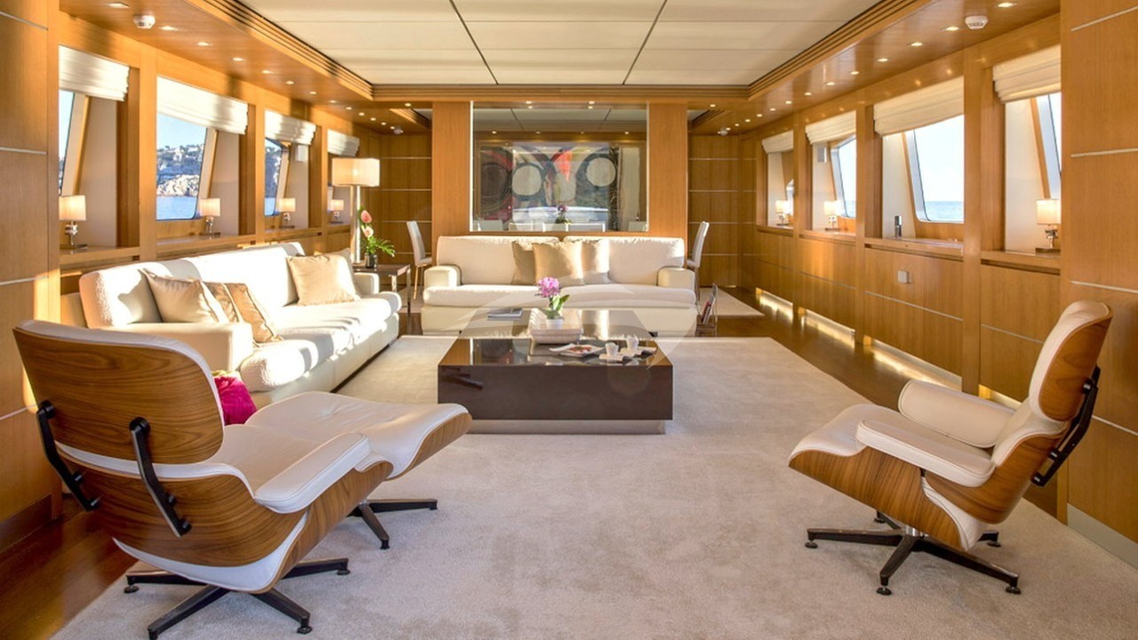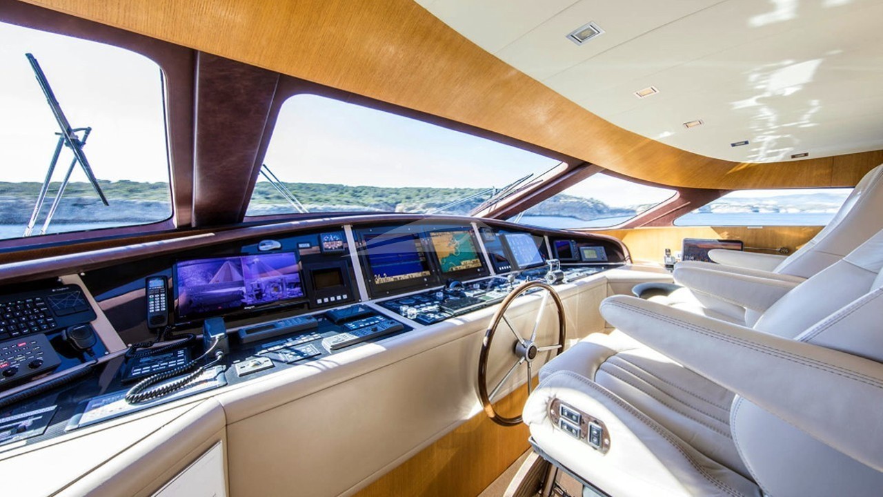 Step onto the covered flybridge and discover a vast chill-out area perfect for soaking up the Mediterranean sun. The aft deck provides alfresco dining opportunities and comfortable seating, while the foredeck offers additional sunbathing spots. Inside, a beautifully proportioned lounge and dining area await, showcasing the yacht's bright, fresh, and inviting interiors.