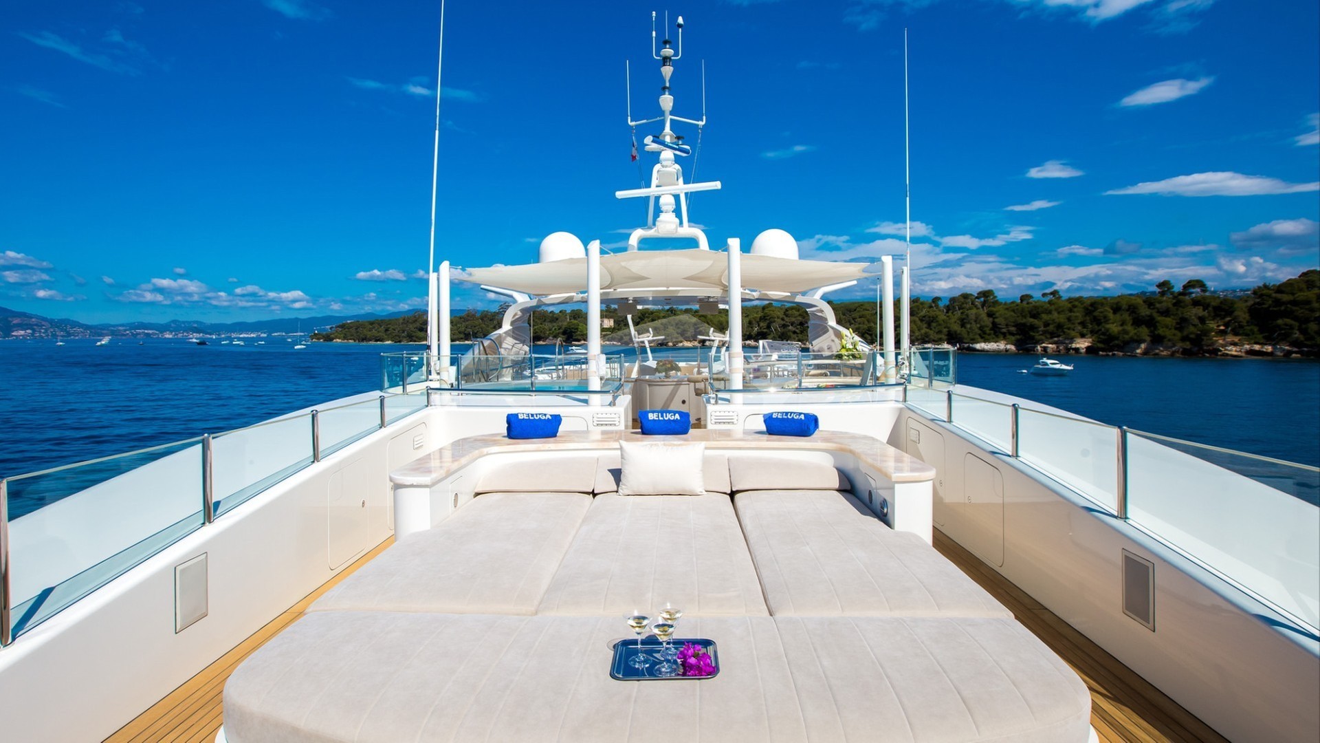 The yacht's expansive sundeck is a true highlight, featuring a inviting jacuzzi pool for ultimate relaxation. For fitness enthusiasts, the brand-new beach club at sea level houses a fully-equipped gym and rejuvenating sauna, ensuring guests can maintain their wellness routines while enjoying breathtaking ocean views.