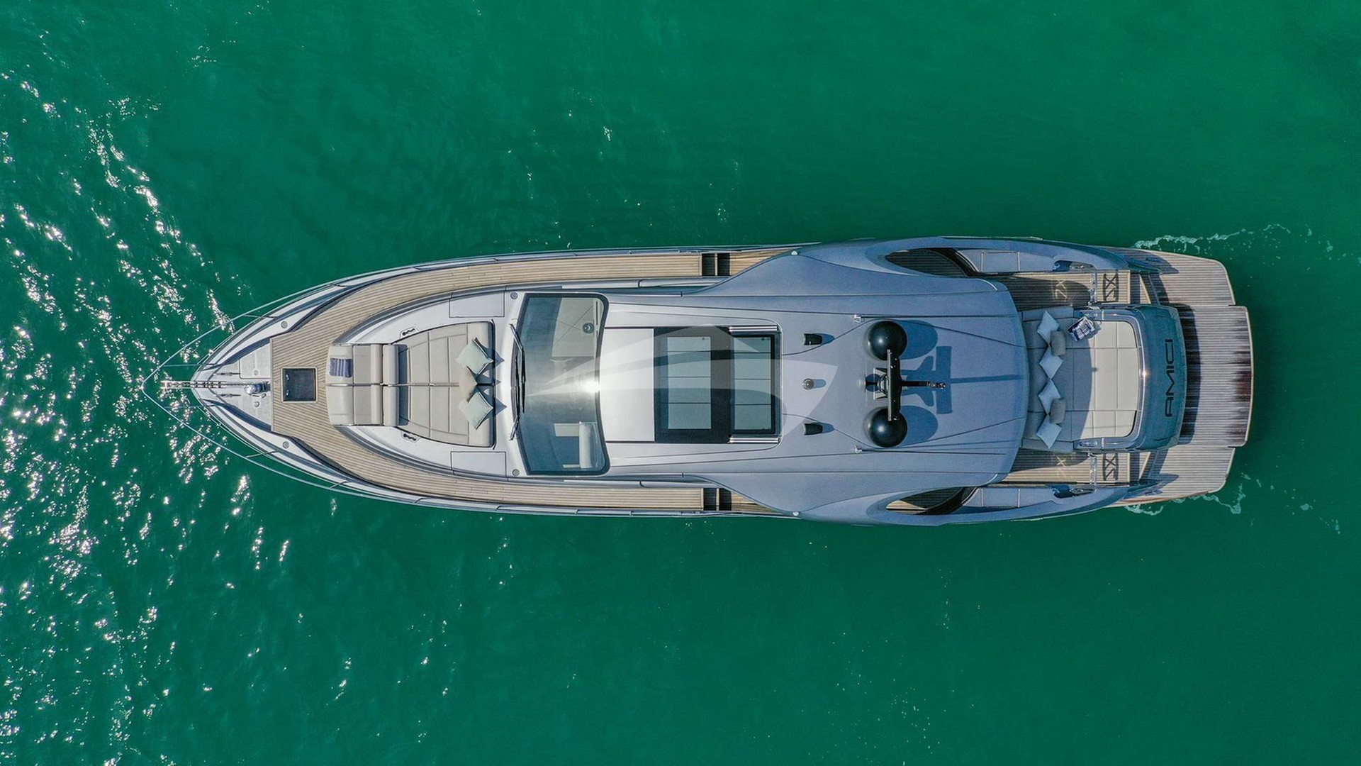 Amici Yacht Charter is a 69' superyacht built by Pershing in 2022. She sleeps 6 and holds 2 crew and is located in East Coast United States and East Coast United States. She can be booked for a private luxury charter at a rate of $48,000 per week. Please check with your Denison Charter Specialist for more info.