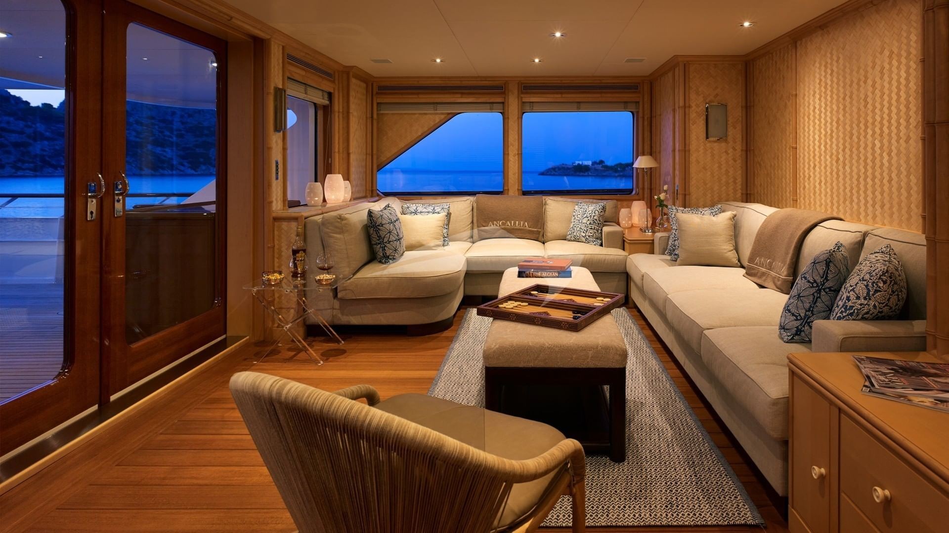 With classic exterior lines Ancallia boasts three outer deck areas offering spacious lounging areas and of course a Jacuzzi on the sundeck. Her luxurious moder interior has been designed to suit all tastes with chic and sleek lines.
