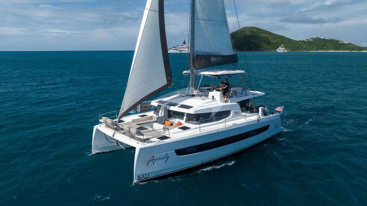 Apricity Yacht Charter is a 45' superyacht built by Bali Catamarans in 2023. She sleeps 8 and holds 2 crew and is located in Caribbean and Caribbean. She can be booked for a private luxury charter at a rate of $23,000 per week. Please check with your Denison Charter Specialist for more info.