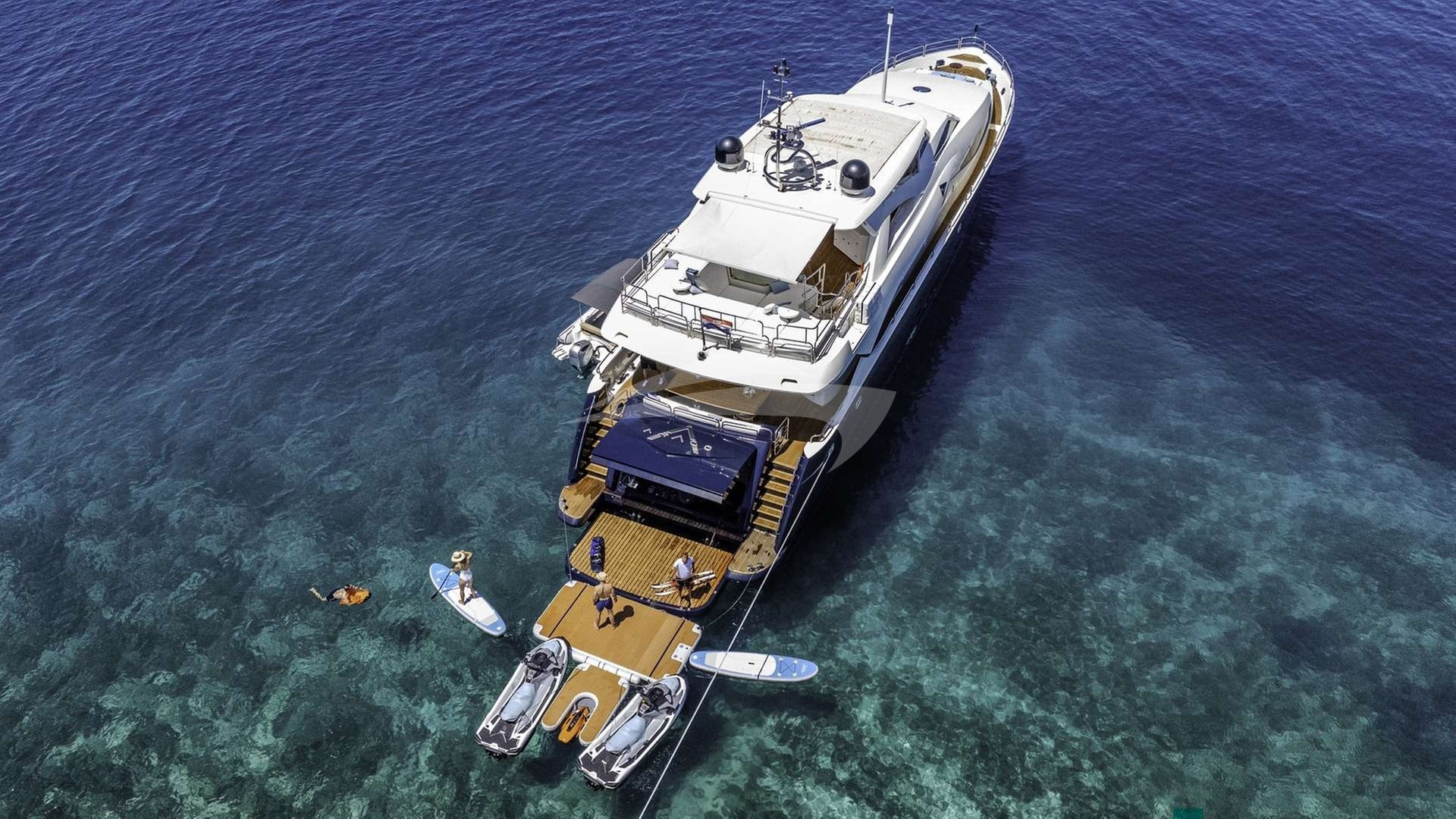 Arago Yacht Charter is a 111' superyacht built by Sunseeker in 2009. She sleeps 10 and holds 6 crew and is located in East Mediterranean and East Mediterranean. She can be booked for a private luxury charter at a rate of $92,027 per week. Please check with your Denison Charter Specialist for more info.