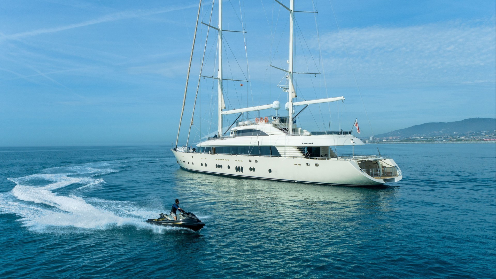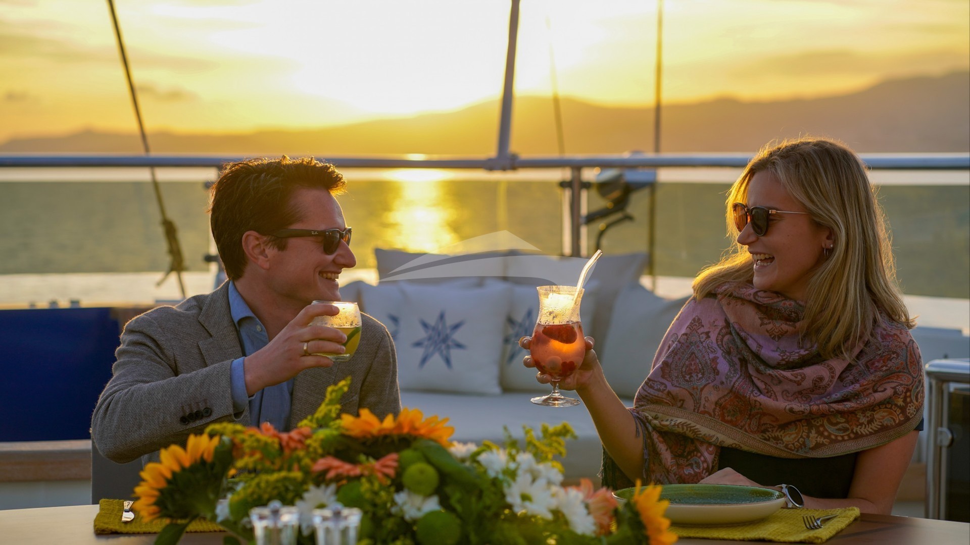 ARESTEAS offers the comfort and the volume of a motor yacht combined with the romantic feelings of a sailing yacht. There is a strong team spirit on board with an experienced and friendly Crew making sure guests enjoy a beautiful charter experience with great food, attentive service and many water sports activities.