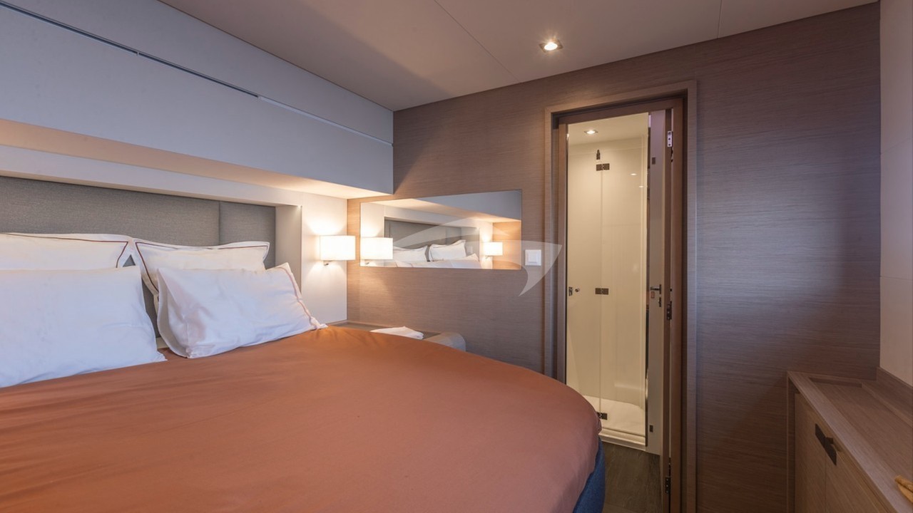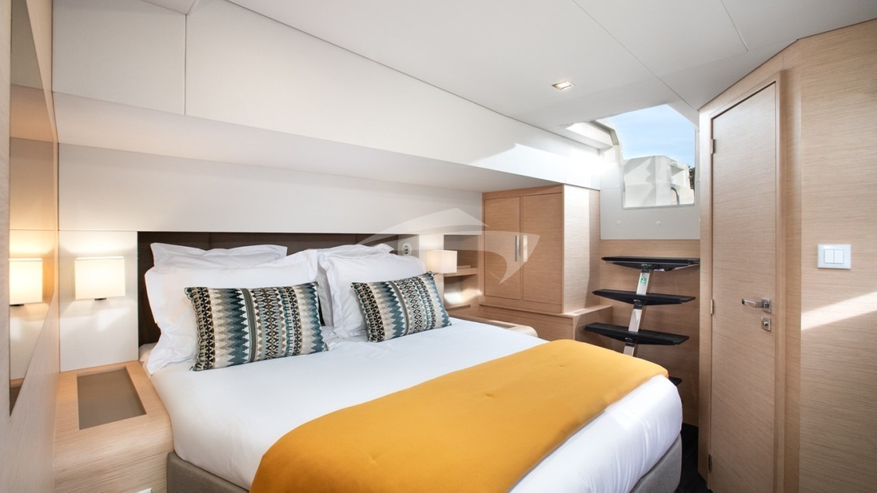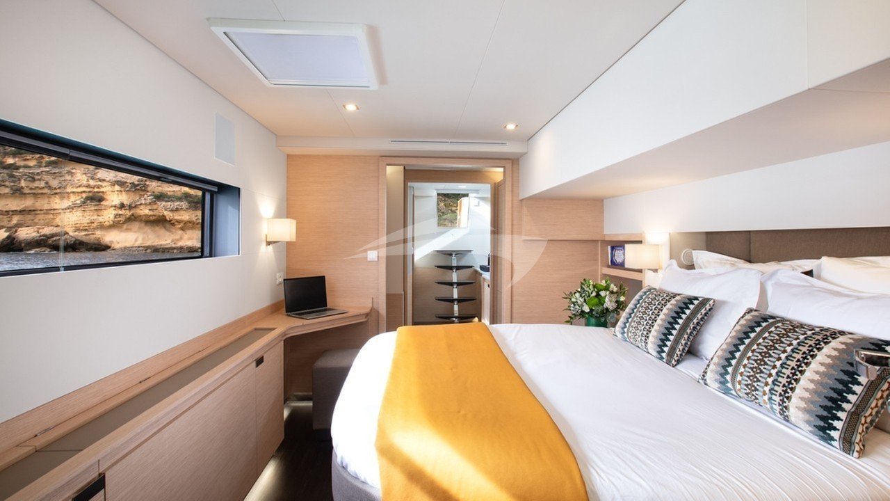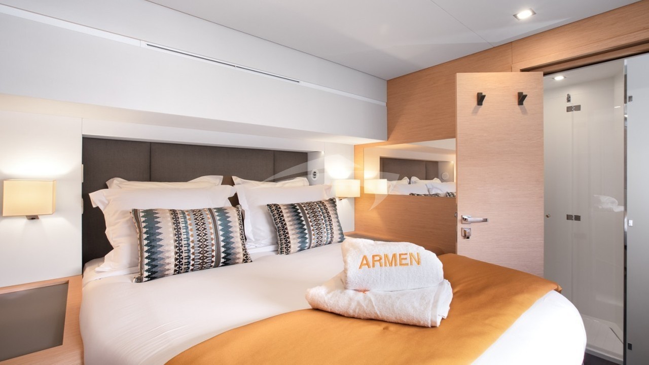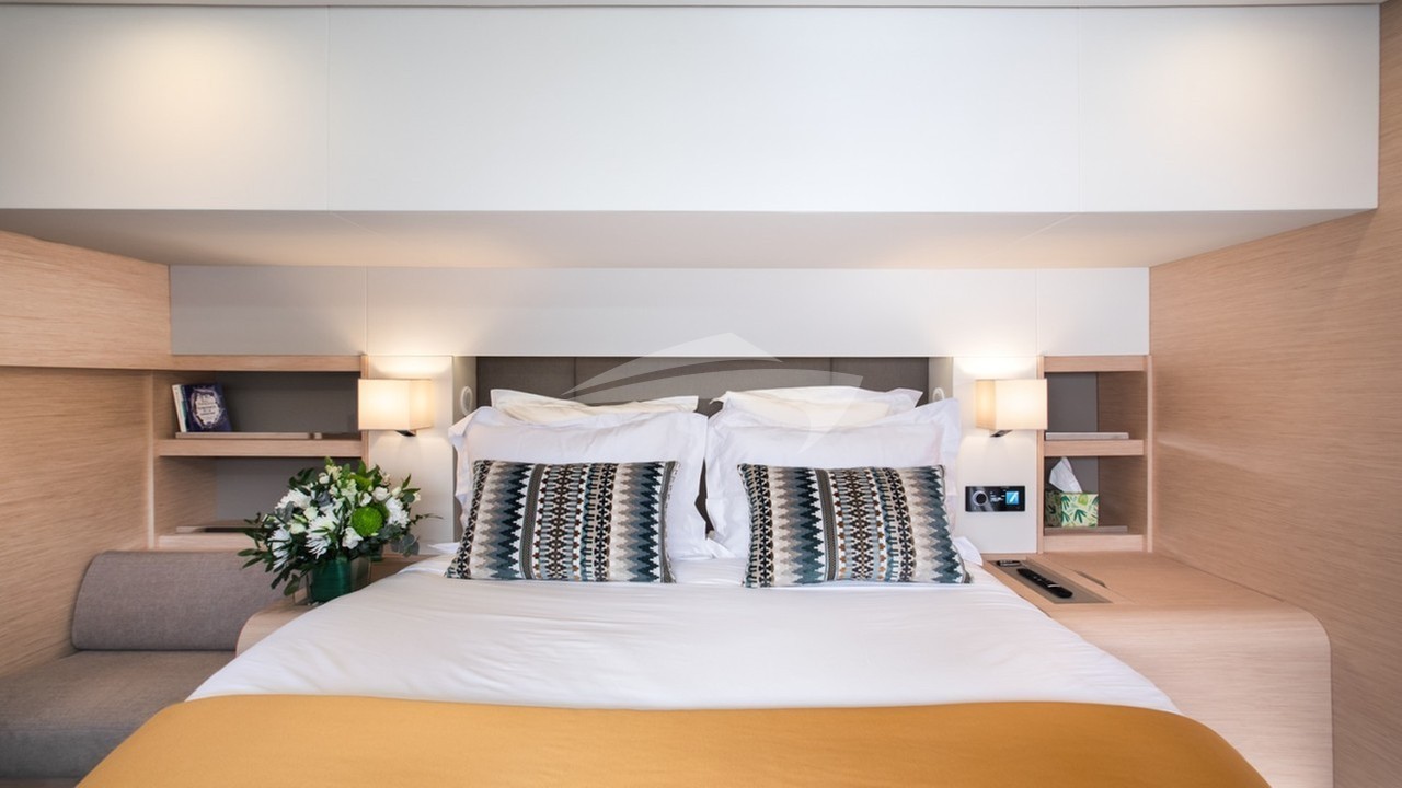 1 MASTER cabin equipped with a Queen size bed (2,00m x 1,60m)