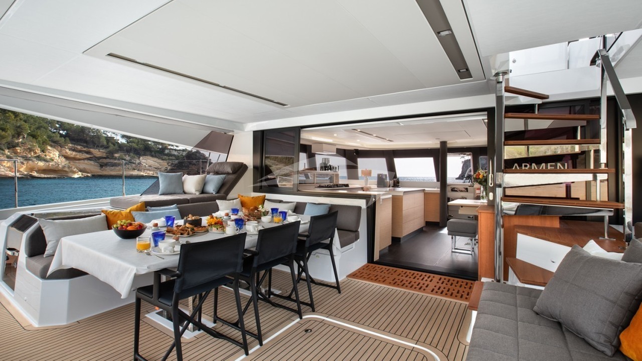 Armen Yacht Charter is a 59' superyacht built by Fountaine Pajot in 2024. She sleeps 8 and holds 3 crew and is located in West Mediterranean and West Mediterranean. She can be booked for a private luxury charter at a rate of $41,937 per week. Please check with your Denison Charter Specialist for more info.