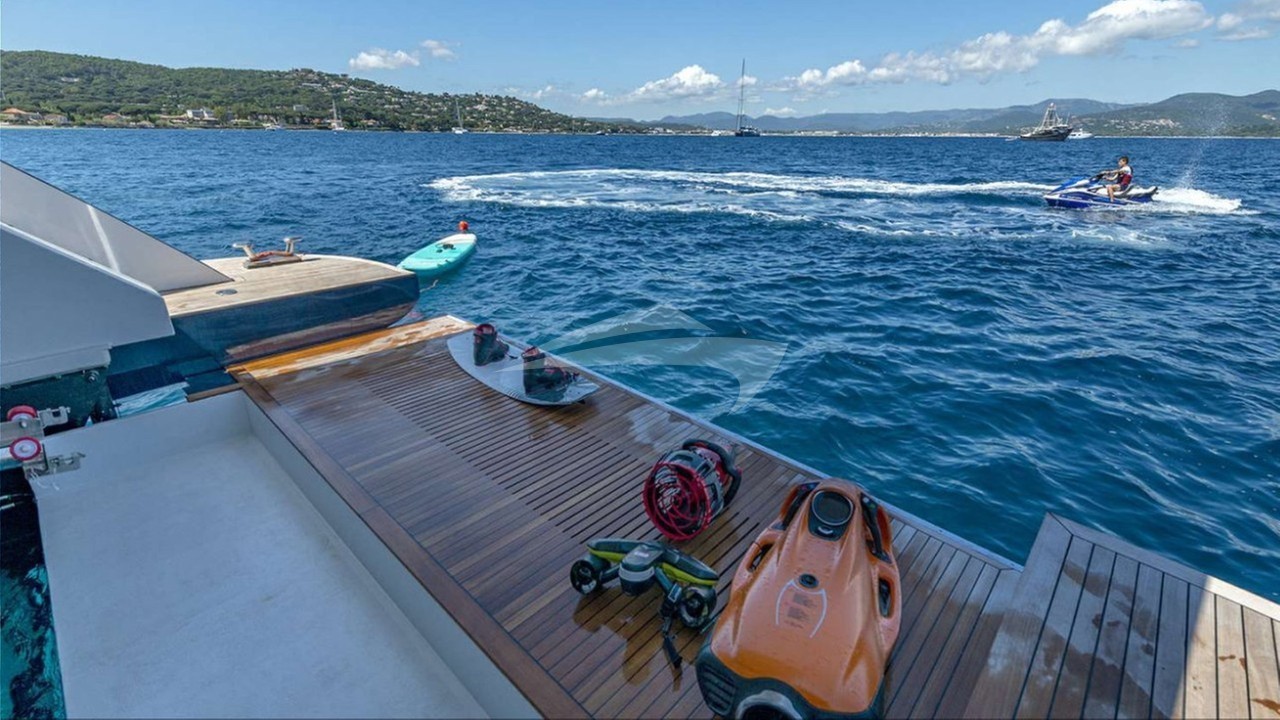 For water enthusiasts, ARSANA offers an extensive array of toys and amenities. From jet skis and paddleboards to towable tubes and wakeboards, there's no shortage of ways to enjoy the crystal-clear Mediterranean waters. The yacht also features a swim platform for easy access to the sea and a 14'3" Williams Jet Tender for coastal exploration.