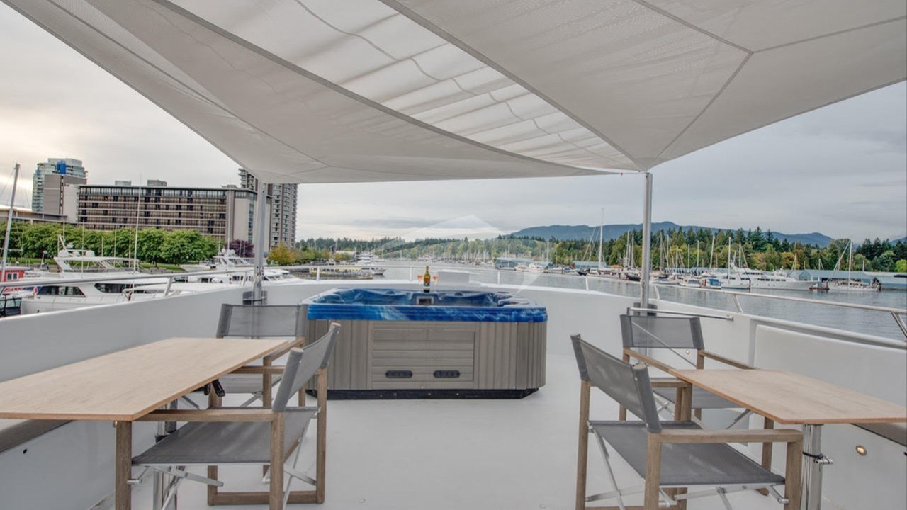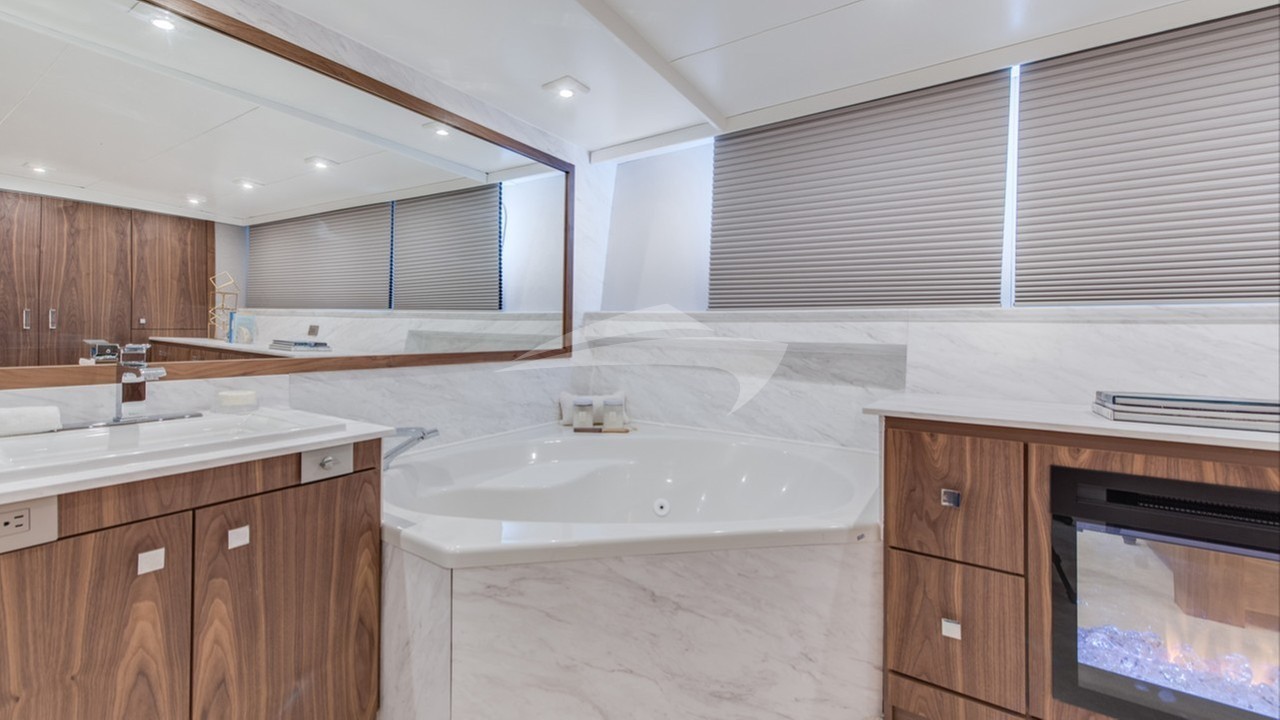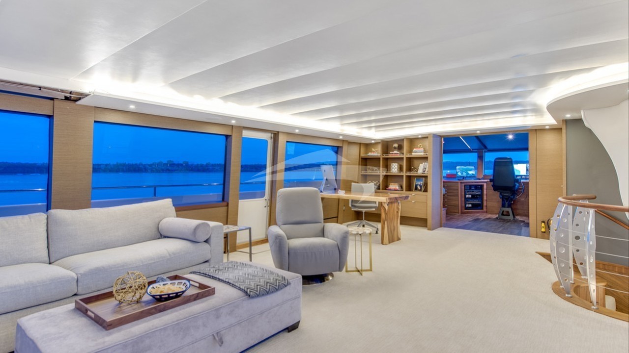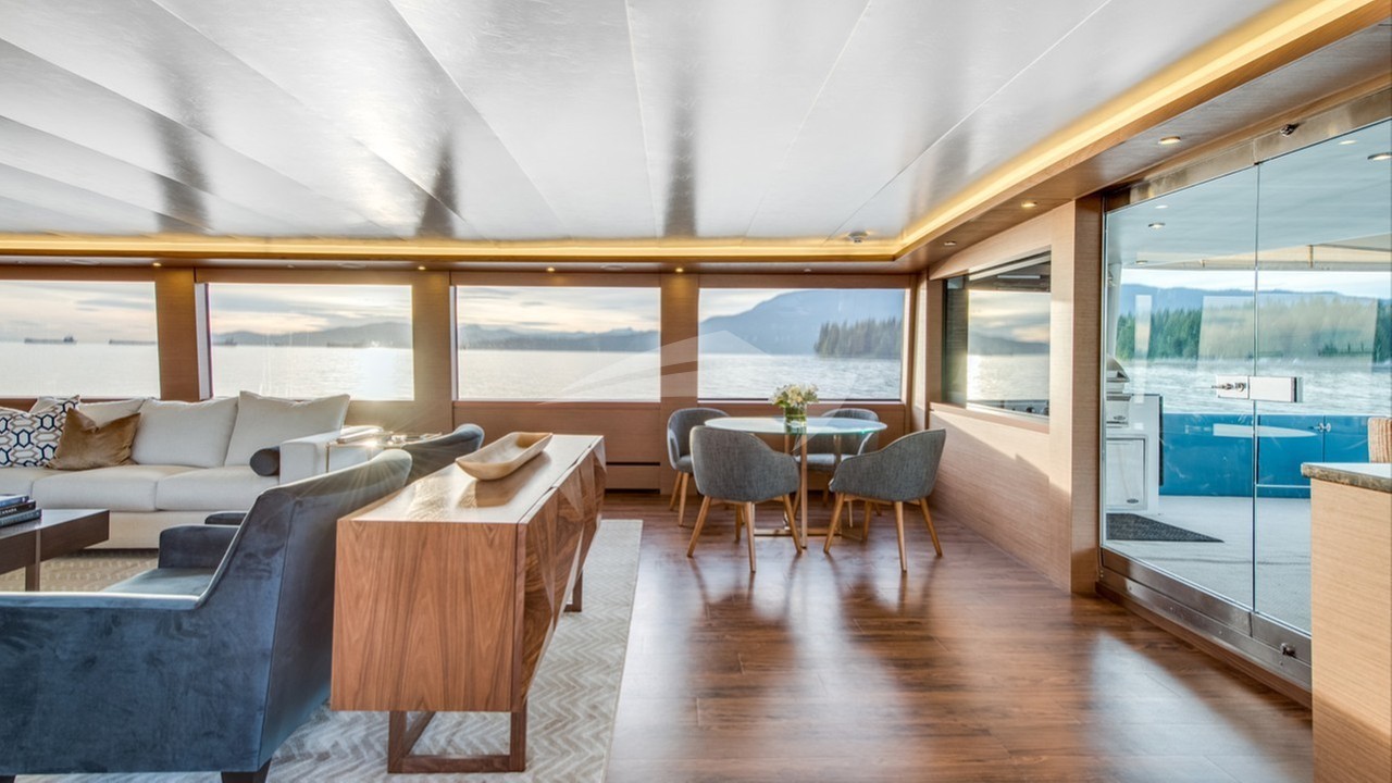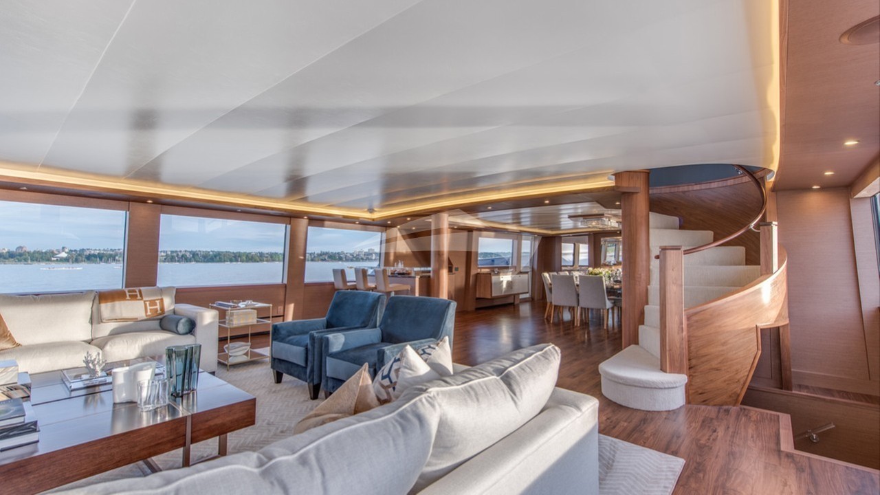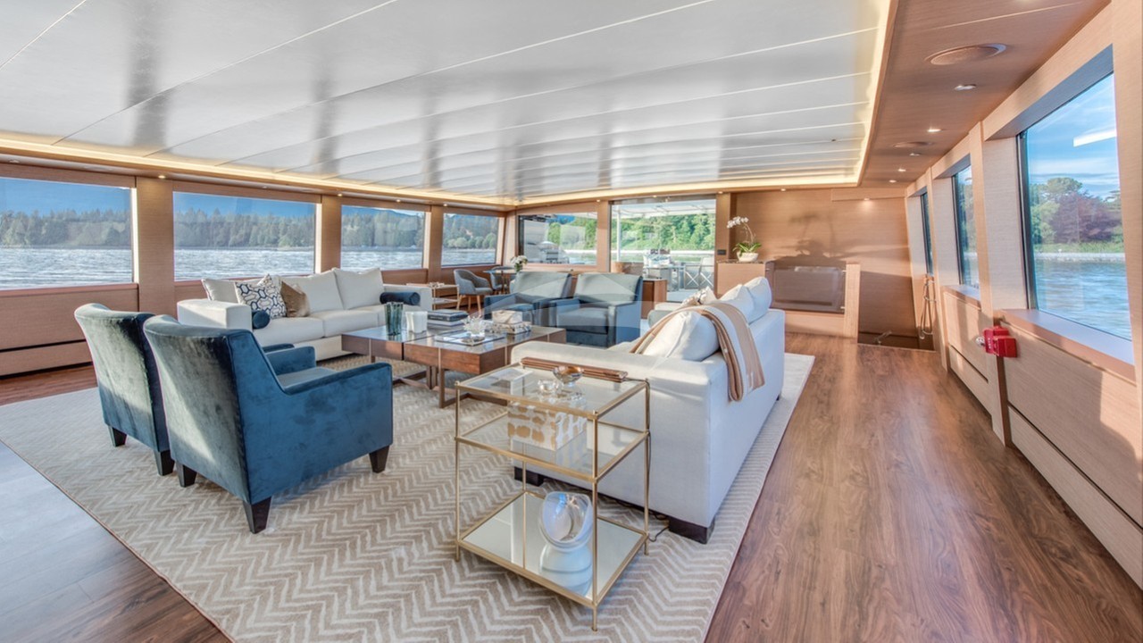 ASCENTE's interior is a testament to refined living, featuring a spacious salon and skylounge perfect for entertaining or unwinding. The yacht's outdoor spaces are equally impressive, with multiple deck areas for sunbathing, al fresco dining, and stargazing. A 4-person Jacuzzi on deck invites guests to soak in the spectacular coastal views while enjoying the utmost in comfort.