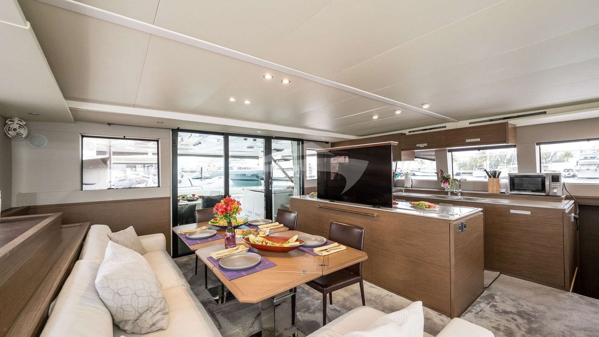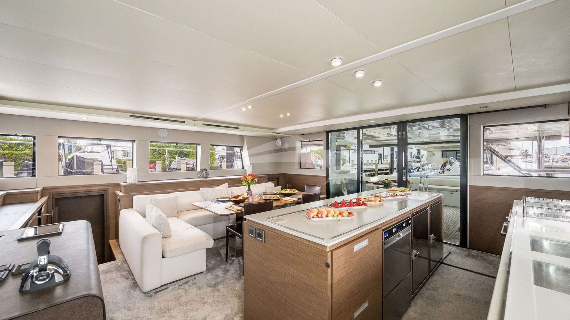 Atlantia Yacht Charter is a 63' superyacht built by Lagoon in 2020. She sleeps 10 and holds 3 crew and is located in Caribbean, East Coast United States and Caribbean, East Coast United States. She can be booked for a private luxury charter at a rate of $42,000 per week. Please check with your Denison Charter Specialist for more info.