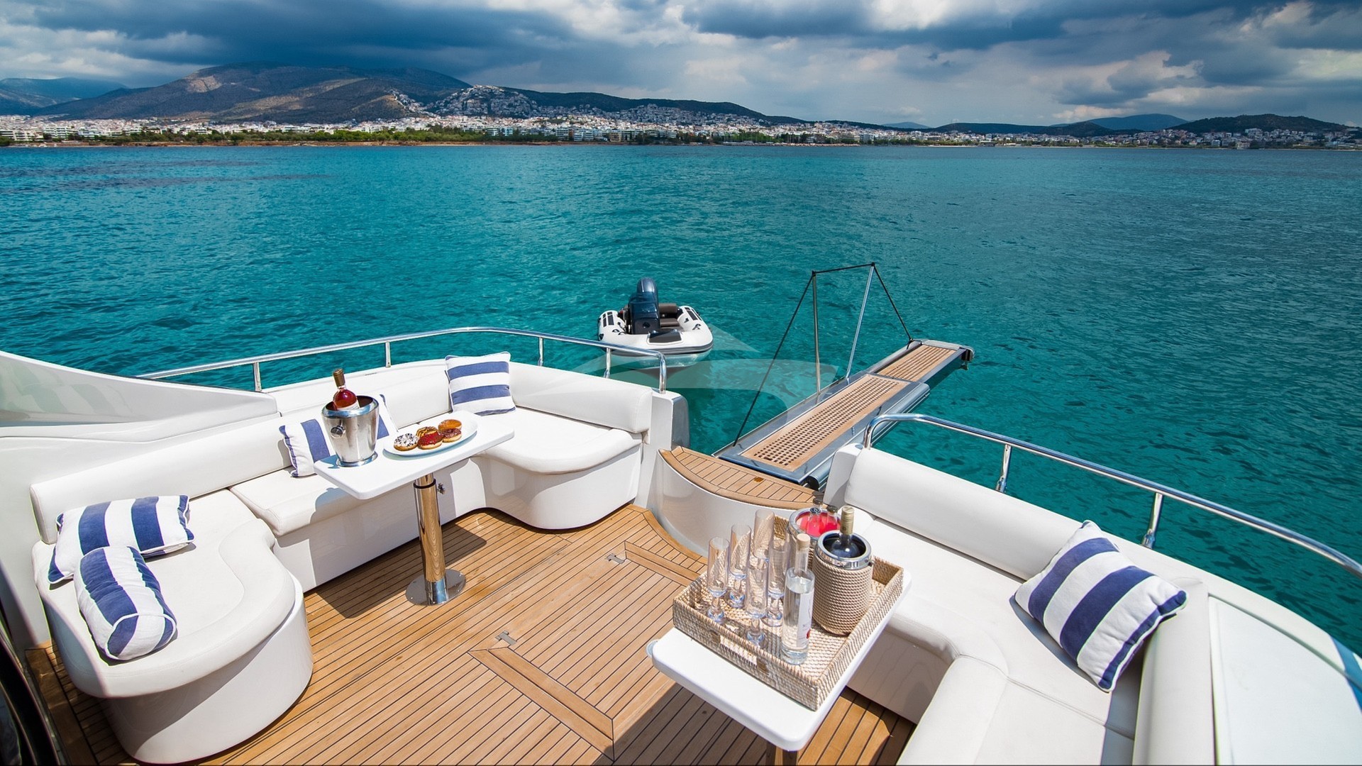 Axion Yacht Charter is a 65' superyacht built by Pershing in 2003. She sleeps 6 and holds 2 crew and is located in East Mediterranean and East Mediterranean. She can be booked for a private luxury charter at a rate of $23,497 per week. Please check with your Denison Charter Specialist for more info.