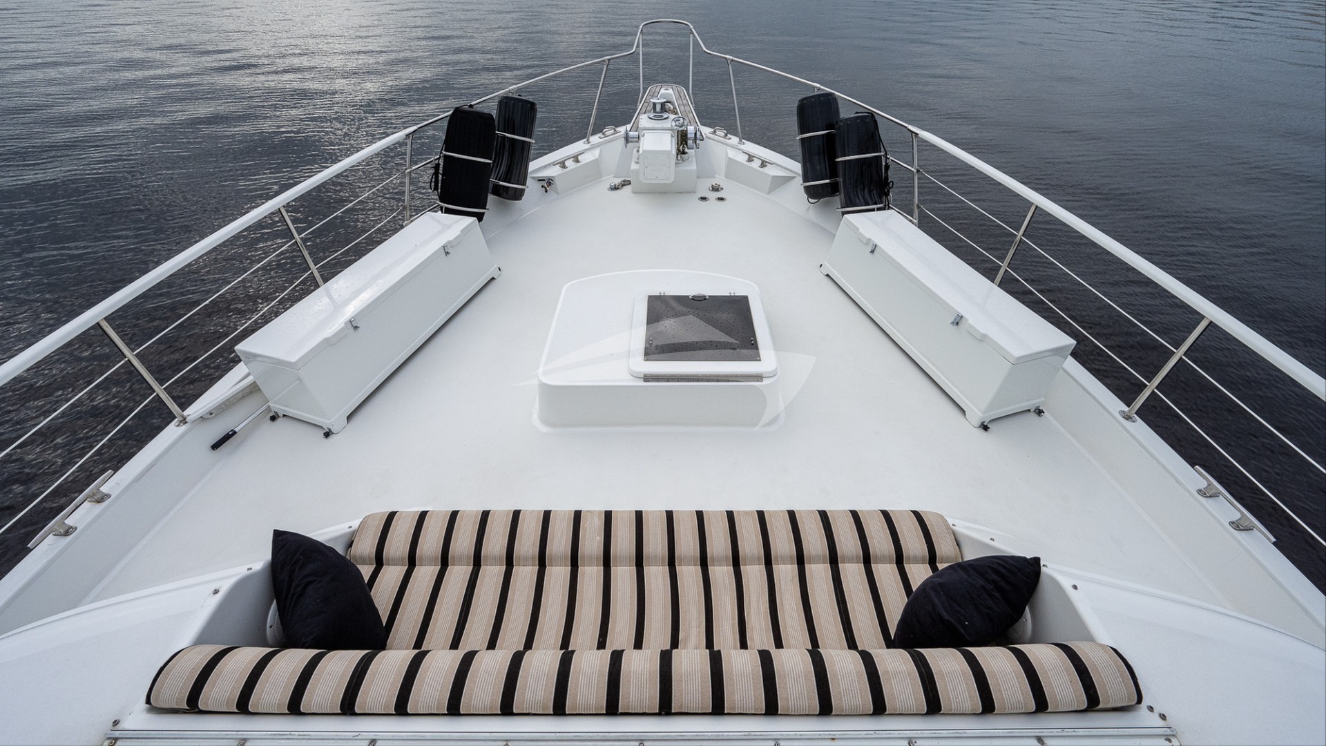 The Bandit is a pristine 80’ Hatteras Motor Yacht with the range necessary to explore all the waters of Southeast Florida and the Bahamas. Crewed typically by a licensed captain and a chef/mate, the Bandit sails with six to eight passengers (add a third crew member, a stewardess or steward, for a more pampered experience).