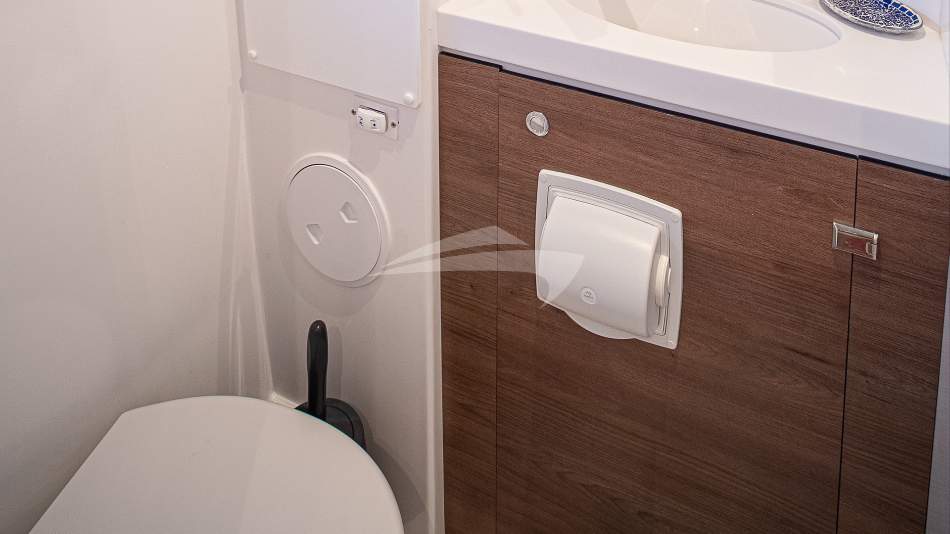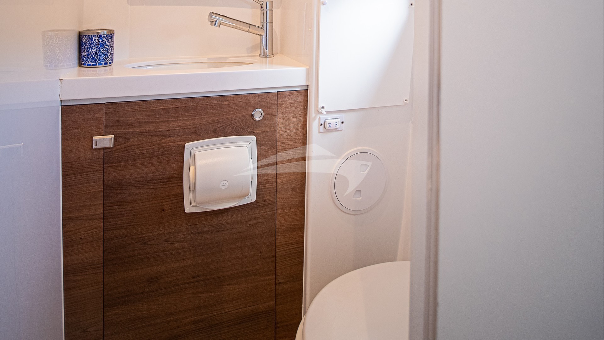 4 queen berth guest cabins each with a private en-suite electric head, shower and sink/vanity. Starboard side heads have dry stall showers, port side heads have wet showers.