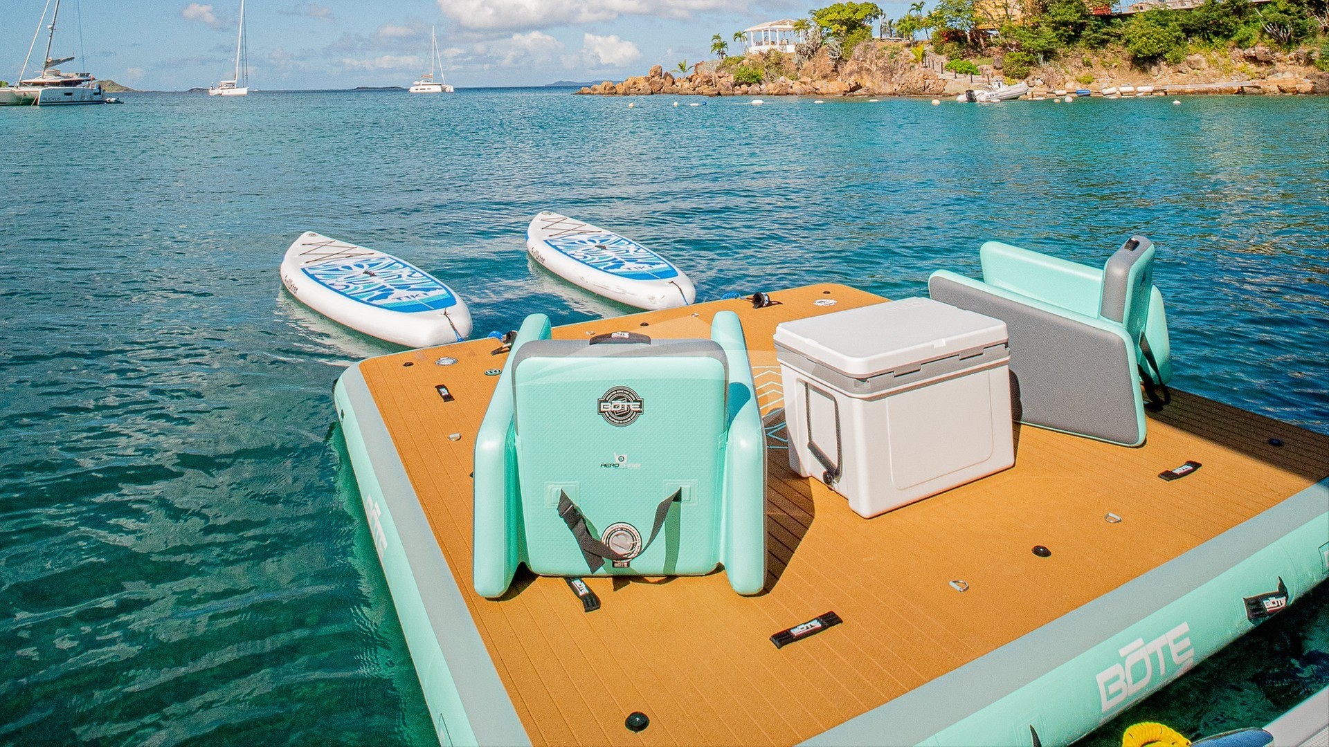 Guests also love the popular floating “living room”: a Bote inflatable dock with floating chairs that turns the water into a social haven for sunbathing, relaxing, or watching the sunset with a drink in hand.