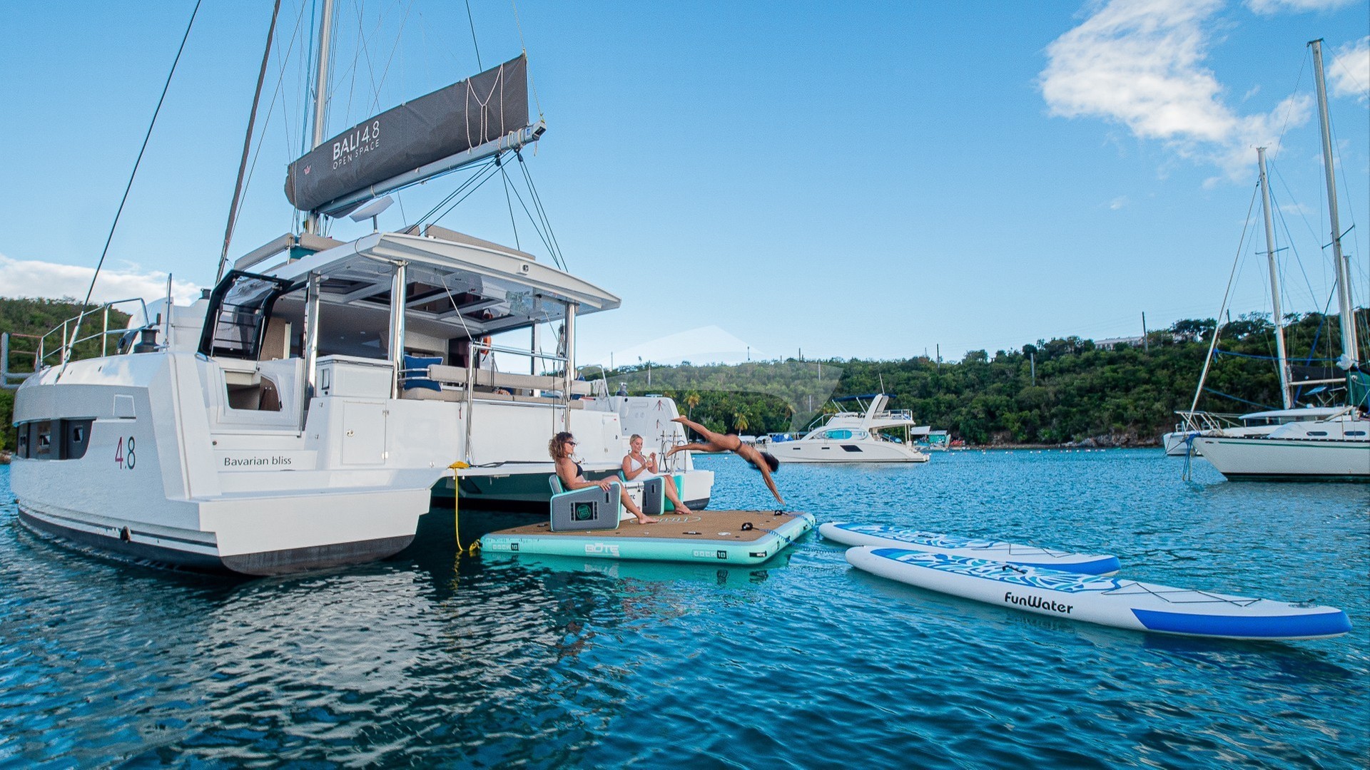 Introducing Bavarian Bliss, a sleek and sophisticated 49’ catamaran launched in 2022, thoughtfully crafted to reflect the spirit of Bali with every detail. Step aboard and you’ll find four elegantly designed queen guest cabins, each offering a peaceful retreat complete with private en-suite heads for maximum comfort and convenience.