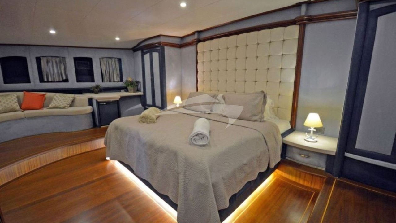 Bellamare is a traditional gulet with a contemporary interior, offering serene cruising along the East Med with her open deck plan. Built in 2008 in Bodrum, she was entirely refitted by her current owner in 2014 to include 2 master + 4 vip spacious and almost equal sized cabins. All cabins are en-suite with 24h air-conditioning. Crew of 7.