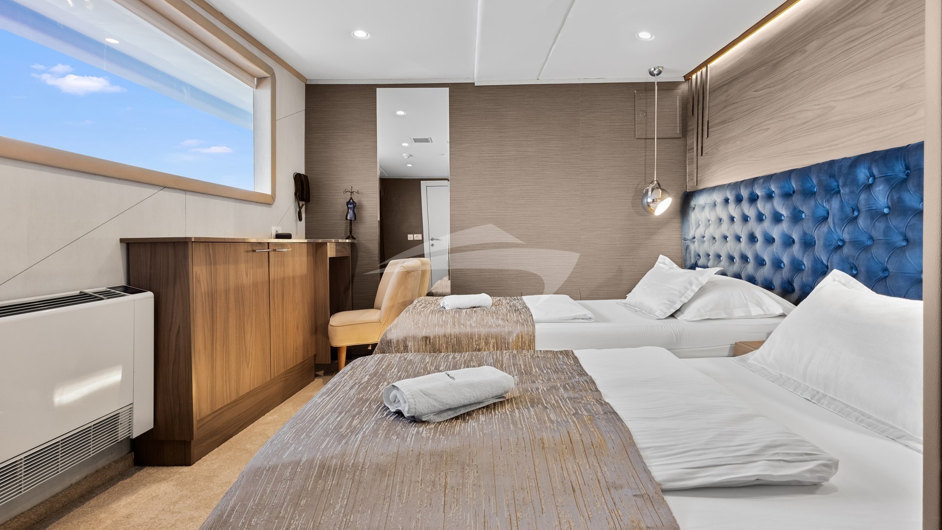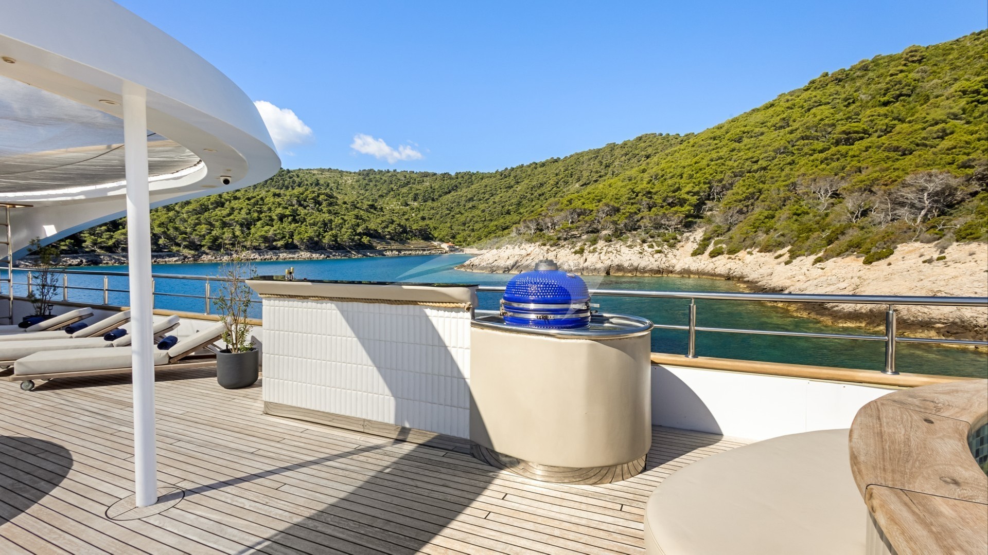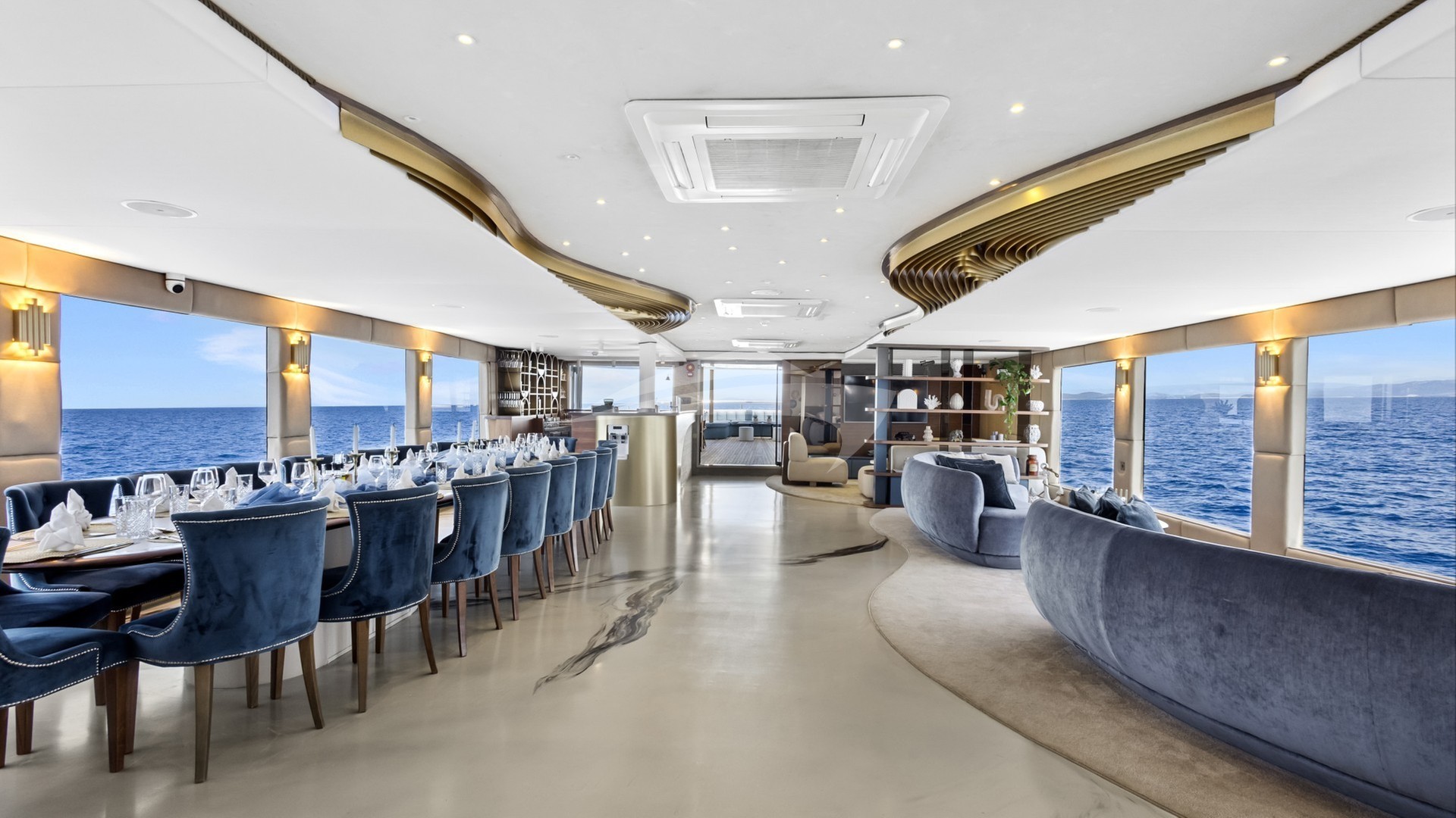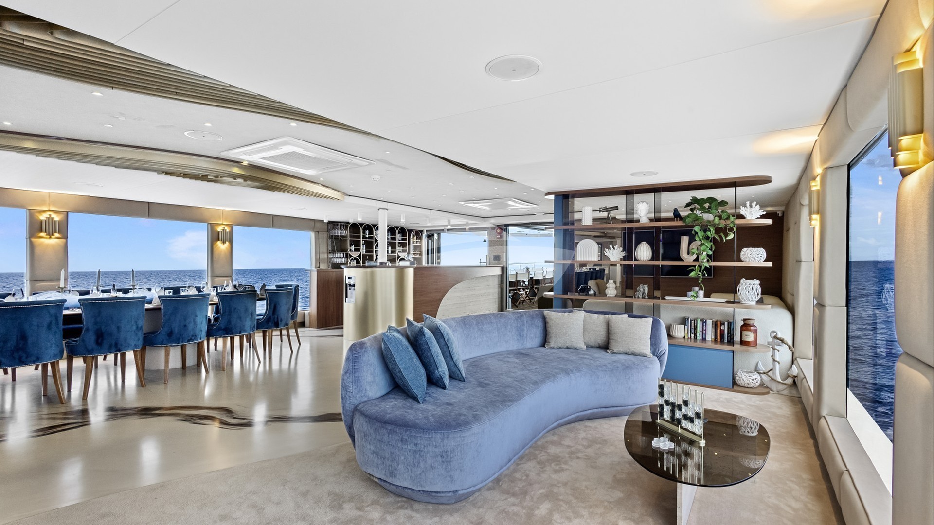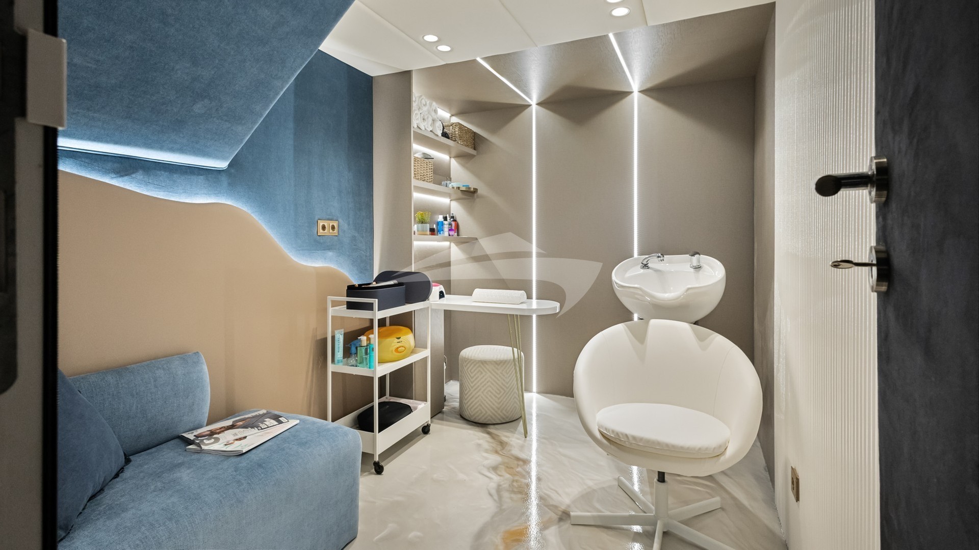BELLA's commitment to luxury extends to its exceptional amenities, including a beauty salon, massage room, and even a children's playroom. The outdoor bar and audio system create the perfect ambiance for unforgettable gatherings under the stars, while the indoor audio system ensures a harmonious atmosphere throughout the vessel.