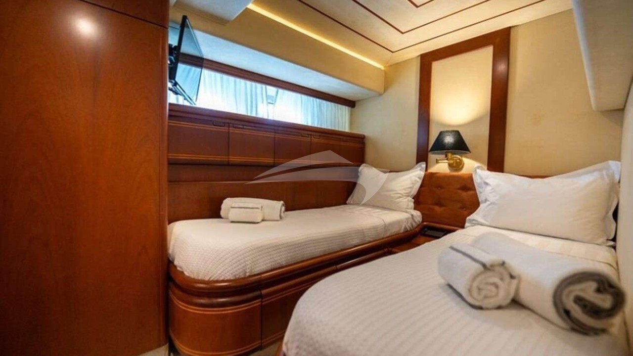 Bellas Boy Yacht Charter is a 80' superyacht built by Ferretti in 1997. She sleeps 10 and holds 4 crew and is located in East Mediterranean and East Mediterranean. She can be booked for a private luxury charter at a rate of $29,123 per week. Please check with your Denison Charter Specialist for more info.