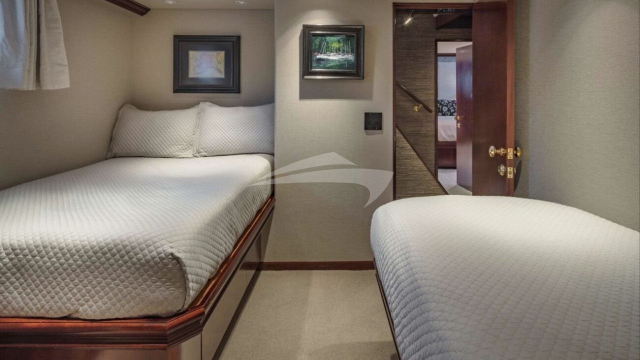 Twin Cabin: Features both a double and single bed, offering flexibility for families or friends.