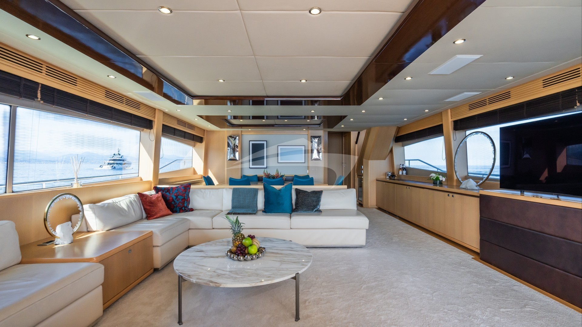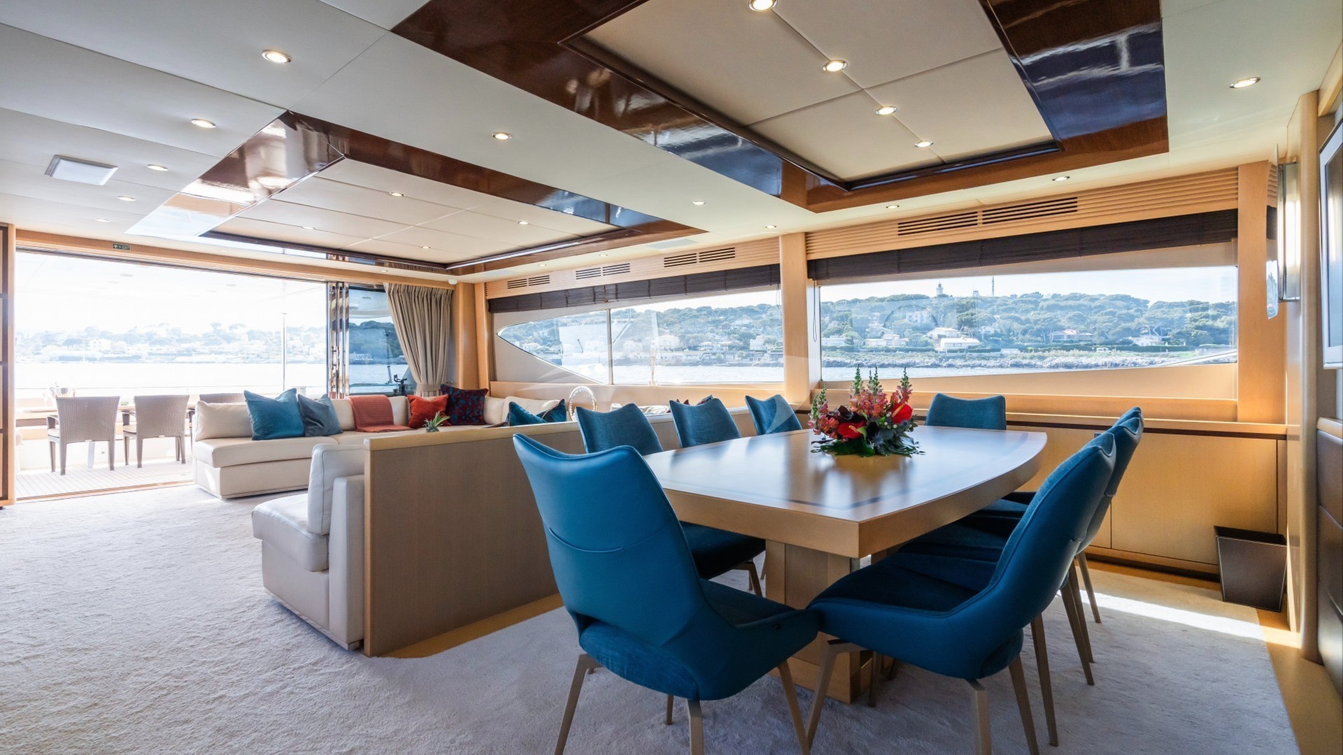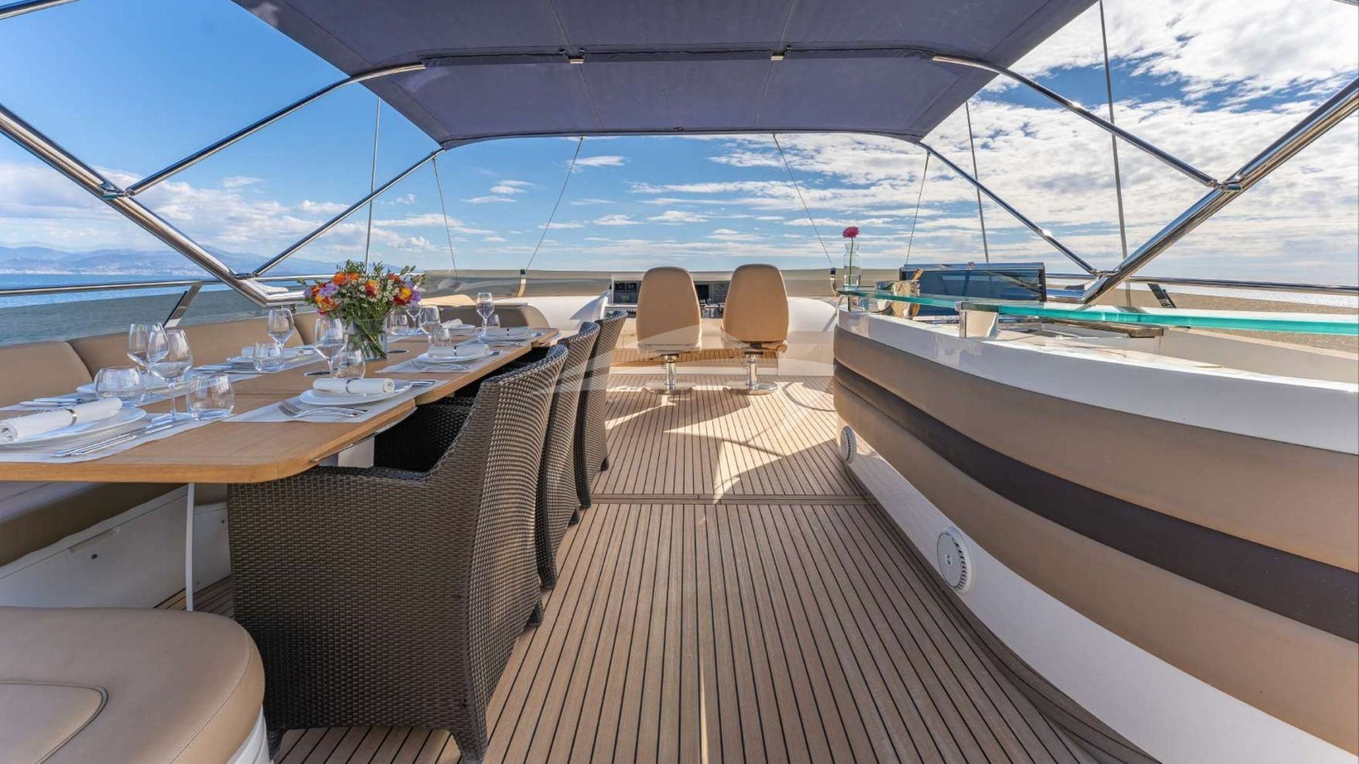 This elegant yacht is perfect for entertaining, featuring a generous sundeck with sun loungers, a bar, and a relaxed seating area. The aft deck offers an inviting space for relaxed lunches or dinners, while sunbeds at the bow provide the perfect spot to enjoy cocktails at sunset with stunning views.