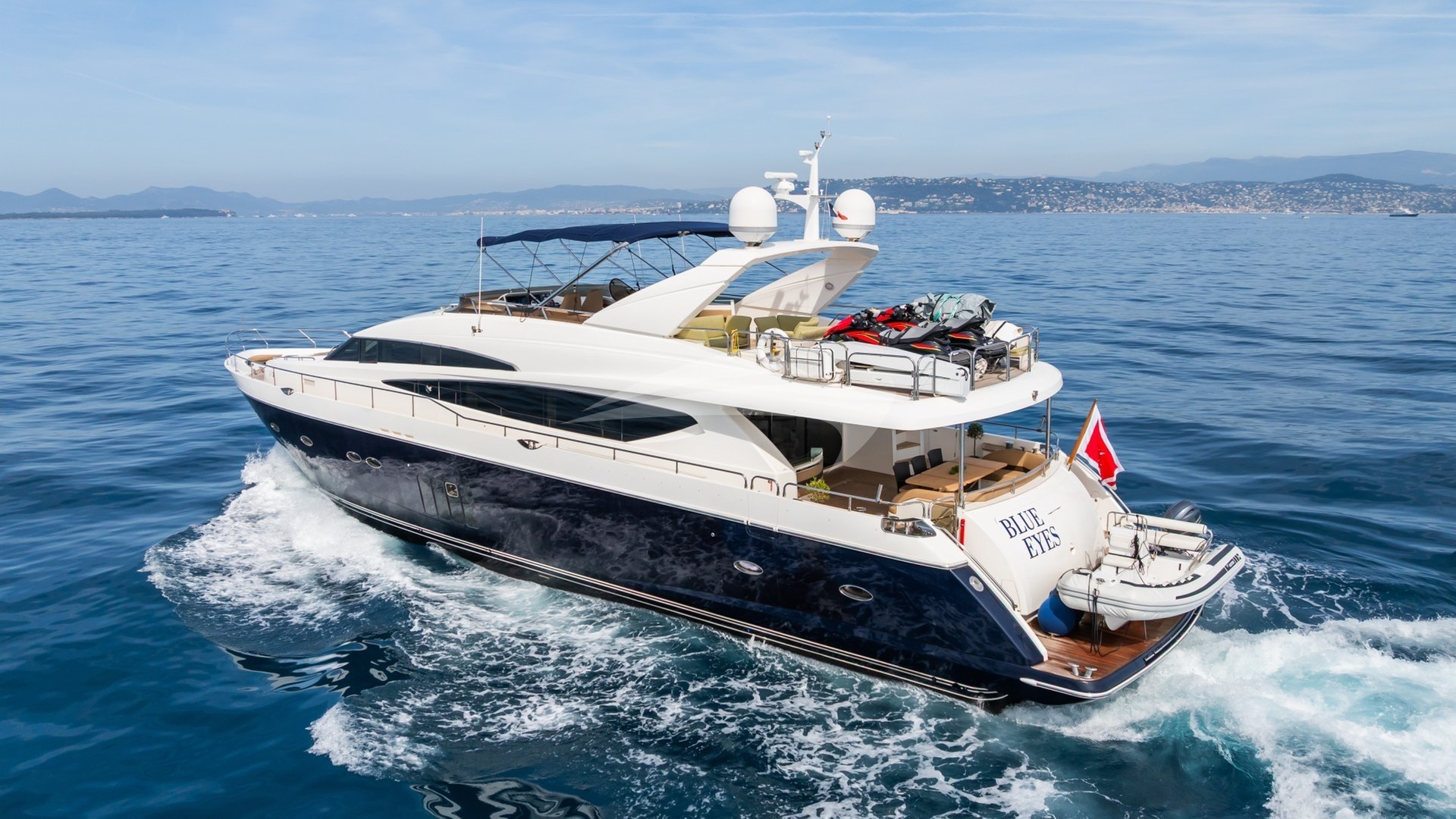 BLUE EYES is a stunning Princess 95, launched in 2009 and beautifully refitted in 2024 for her new owner and charter debut. She offers an exceptional combination of value, luxury, and performance, with spacious accommodations for up to 8 guests in 4 stylish cabins and a professional crew of 5 on board to ensure a seamless experience.