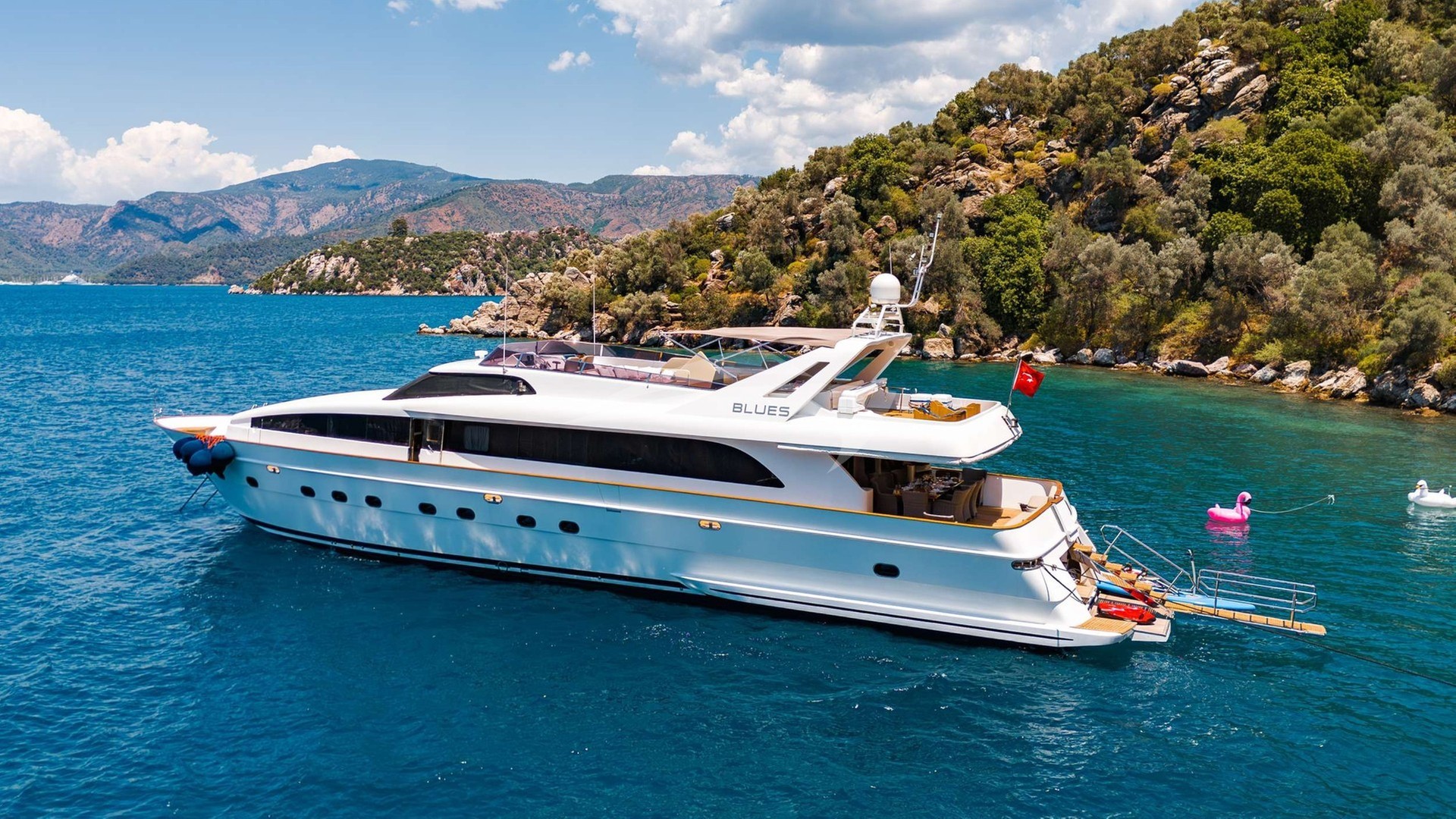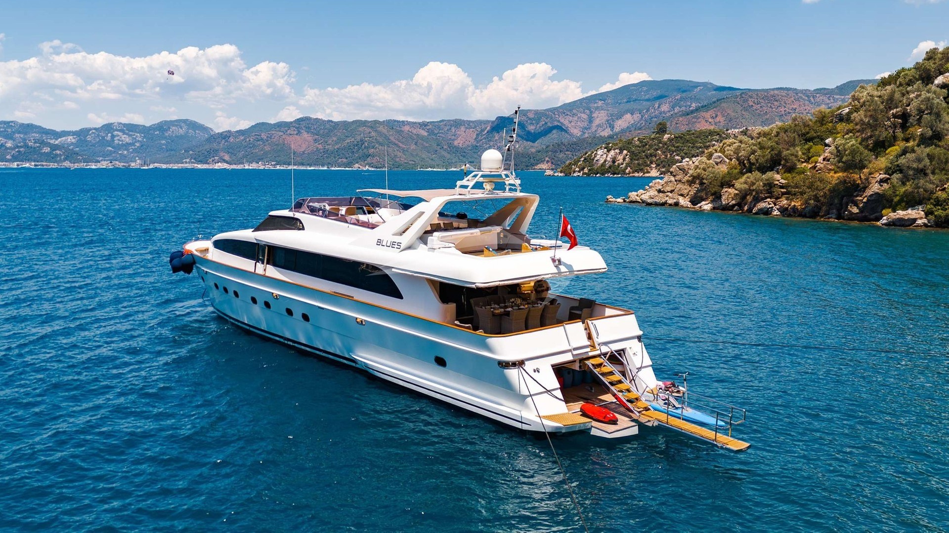 Blues Yacht Charter is a 100' superyacht built by SES Yachts in 1997. She sleeps 10 and holds 5 crew and is located in East Mediterranean and East Mediterranean. She can be booked for a private luxury charter at a rate of $44,849 per week. Please check with your Denison Charter Specialist for more info.