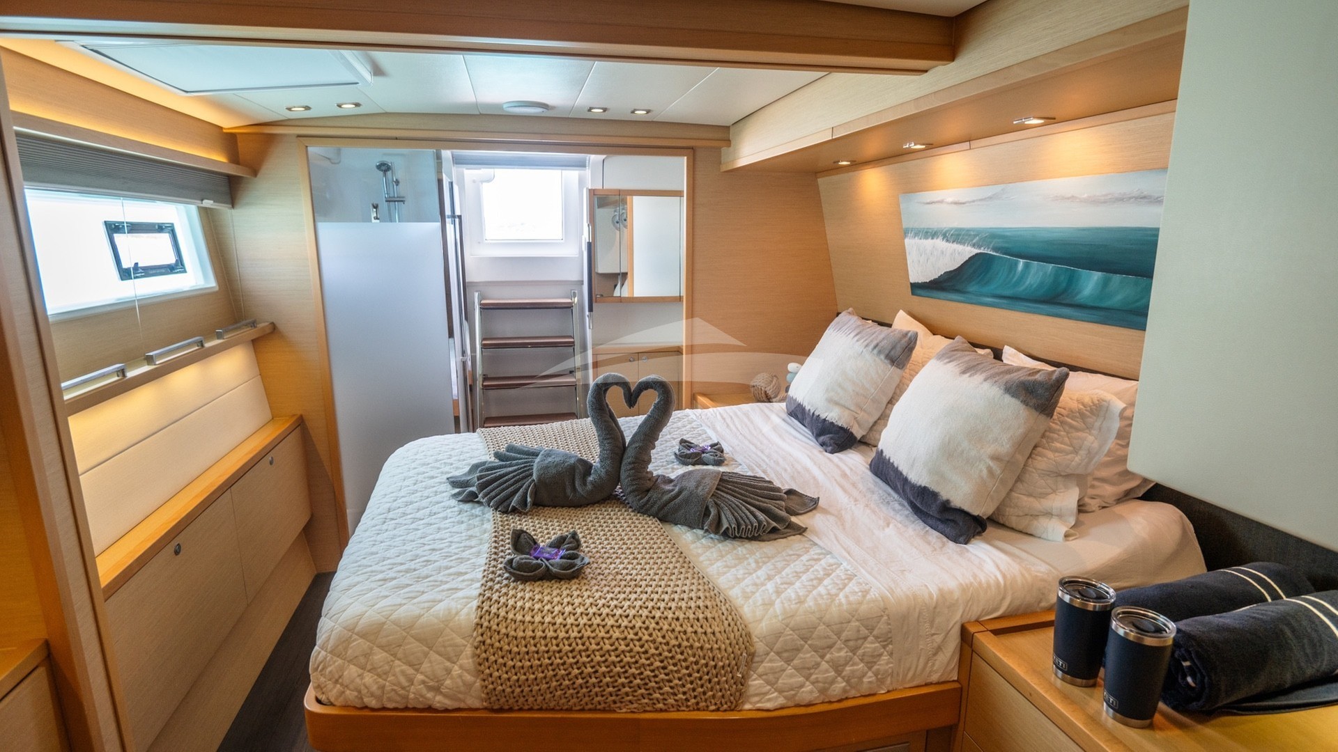 PLAYTIME accommodates up to 8 guests in 3 queen suites and 1 twin bunk cabin. All the guest suites feature full A/C and ensuite head and shower. Twin cabin is a wet head.