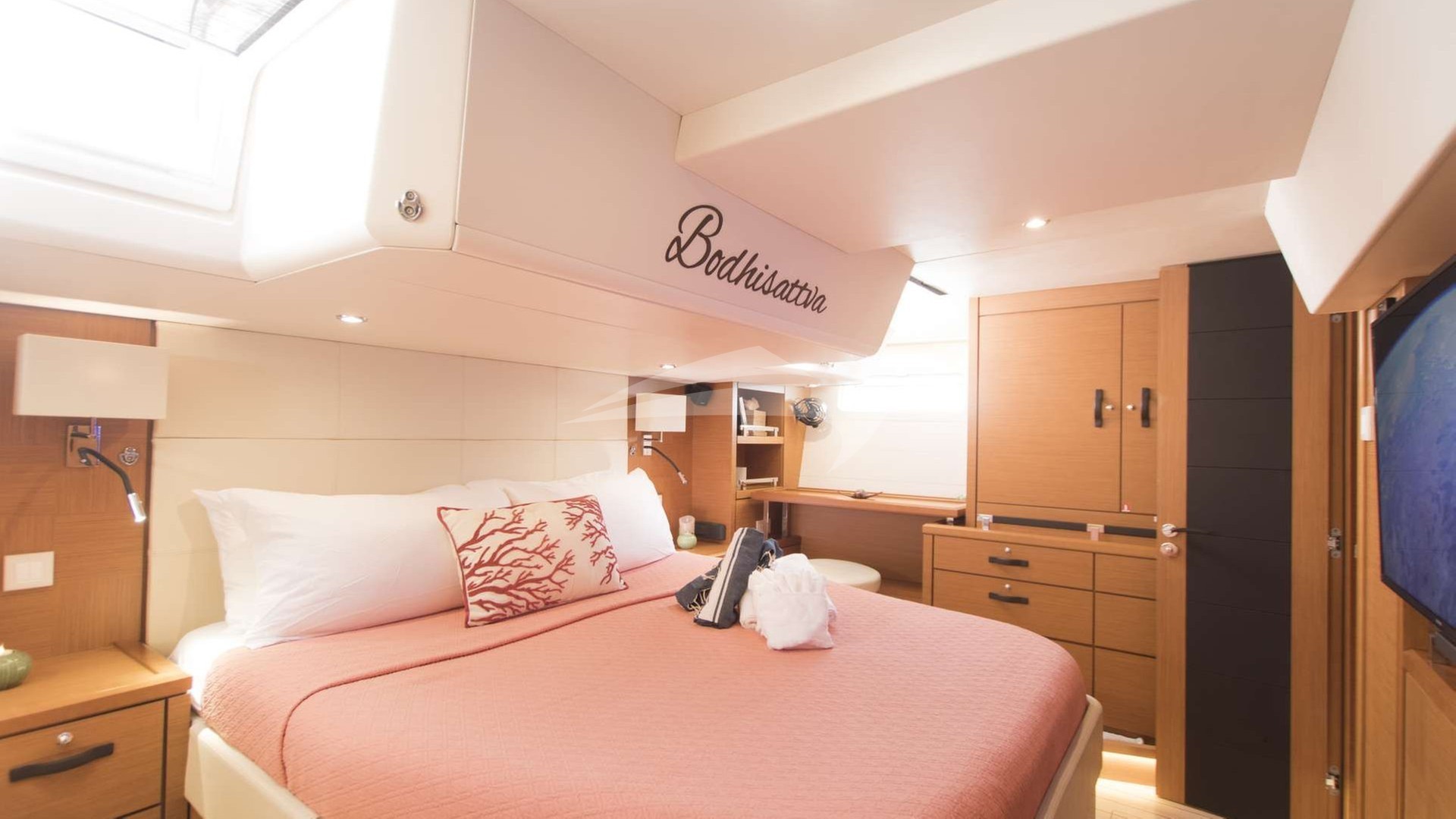 Step aboard BODHISATTVA, a refined sailing yacht in the under-70-foot class, offering an exceptional blend of performance, comfort, and style for up to six guests. Featuring a thoughtfully designed 3-cabin layout, guests will enjoy a spacious full-beam master suite aft and two well-appointed forward double cabins. Each cabin is fully air-conditioned and includes its own private ensuite bathroom, ensuring ultimate comfort for all aboard.