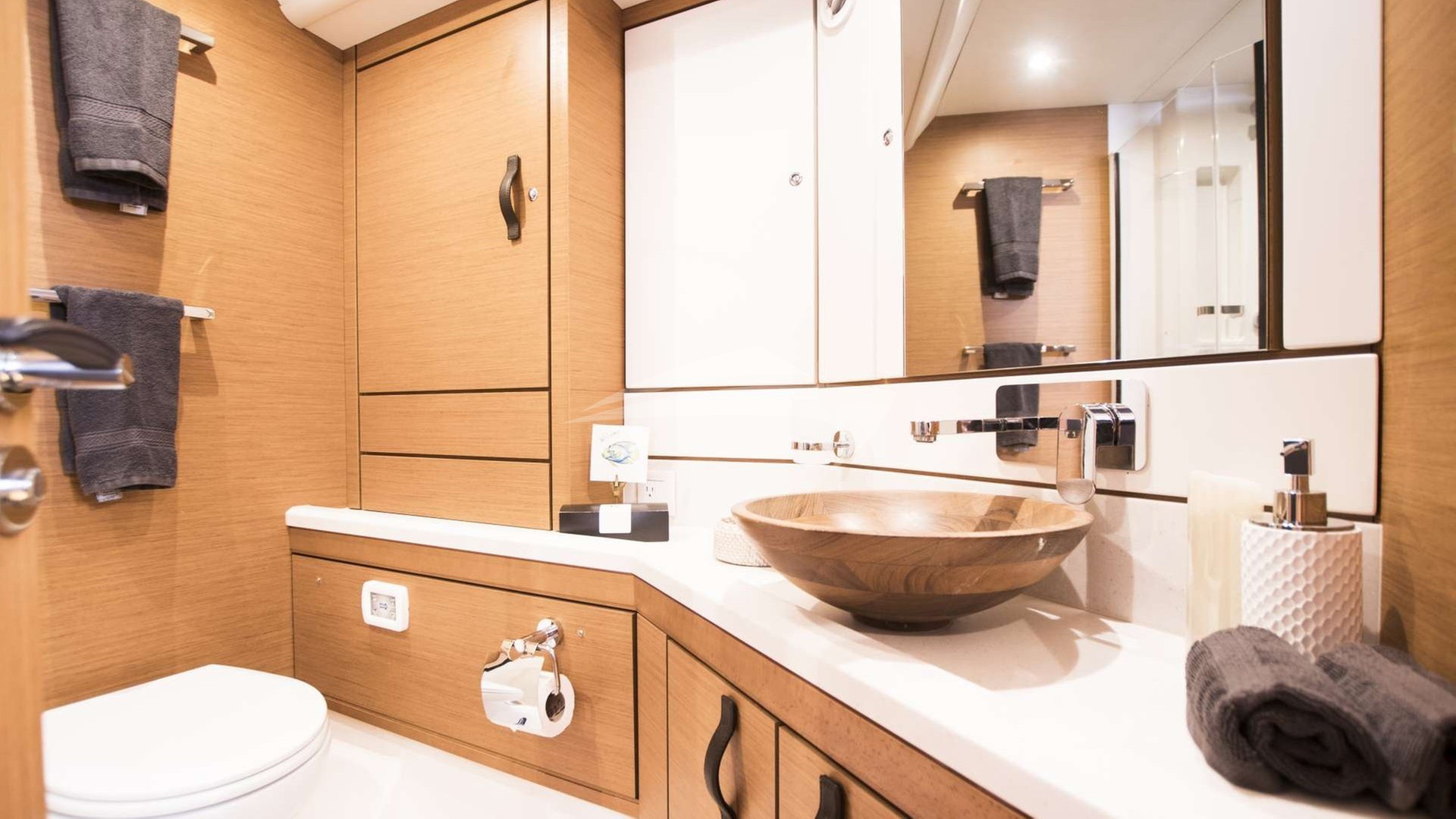 Featuring a thoughtfully designed 3-cabin layout, guests will enjoy a spacious full-beam master suite aft and two well-appointed forward double cabins. Each cabin is fully air-conditioned and includes its own private ensuite bathroom, ensuring ultimate comfort for all aboard.