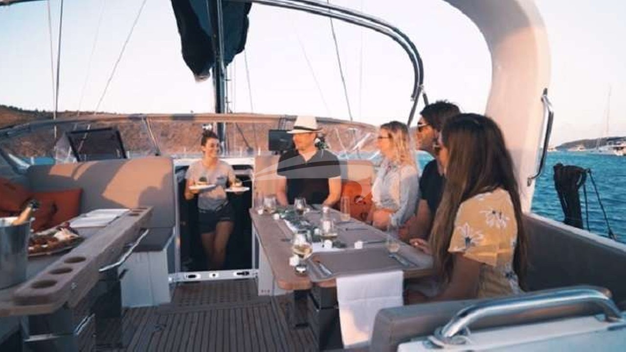 Equipped with a power generator and water maker, BODHISATTVA allows for self-sufficient sailing without sacrificing the luxuries of modern living. Below deck, guests will find entertainment through LED-TV with Apple TV, Wi-Fi connectivity, and a superior sound system. For those who enjoy a cocktail at sunset or fresh grilled seafood under the stars, an onboard ice maker and BBQ grill are at the ready.