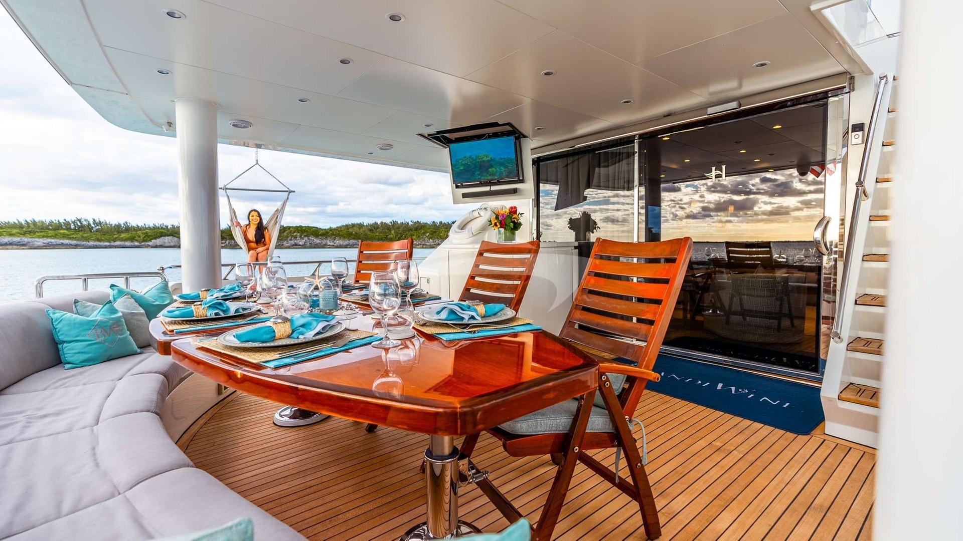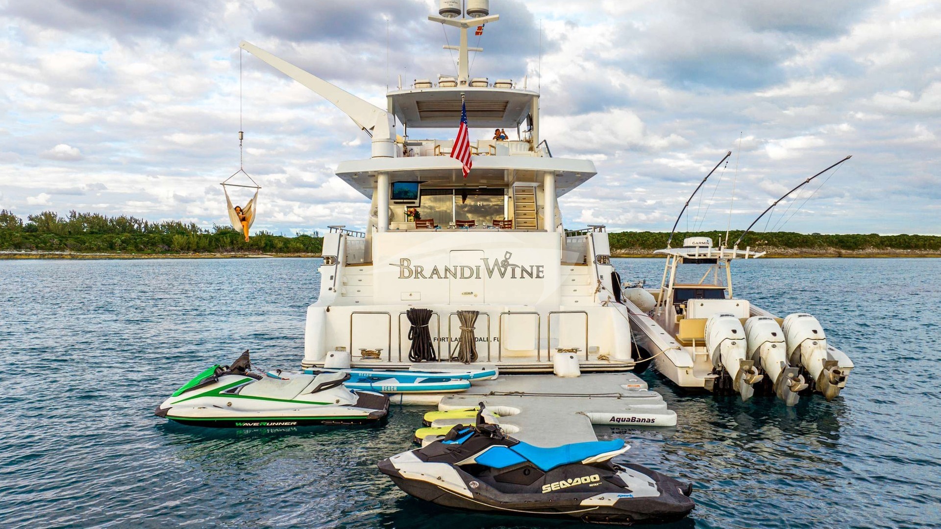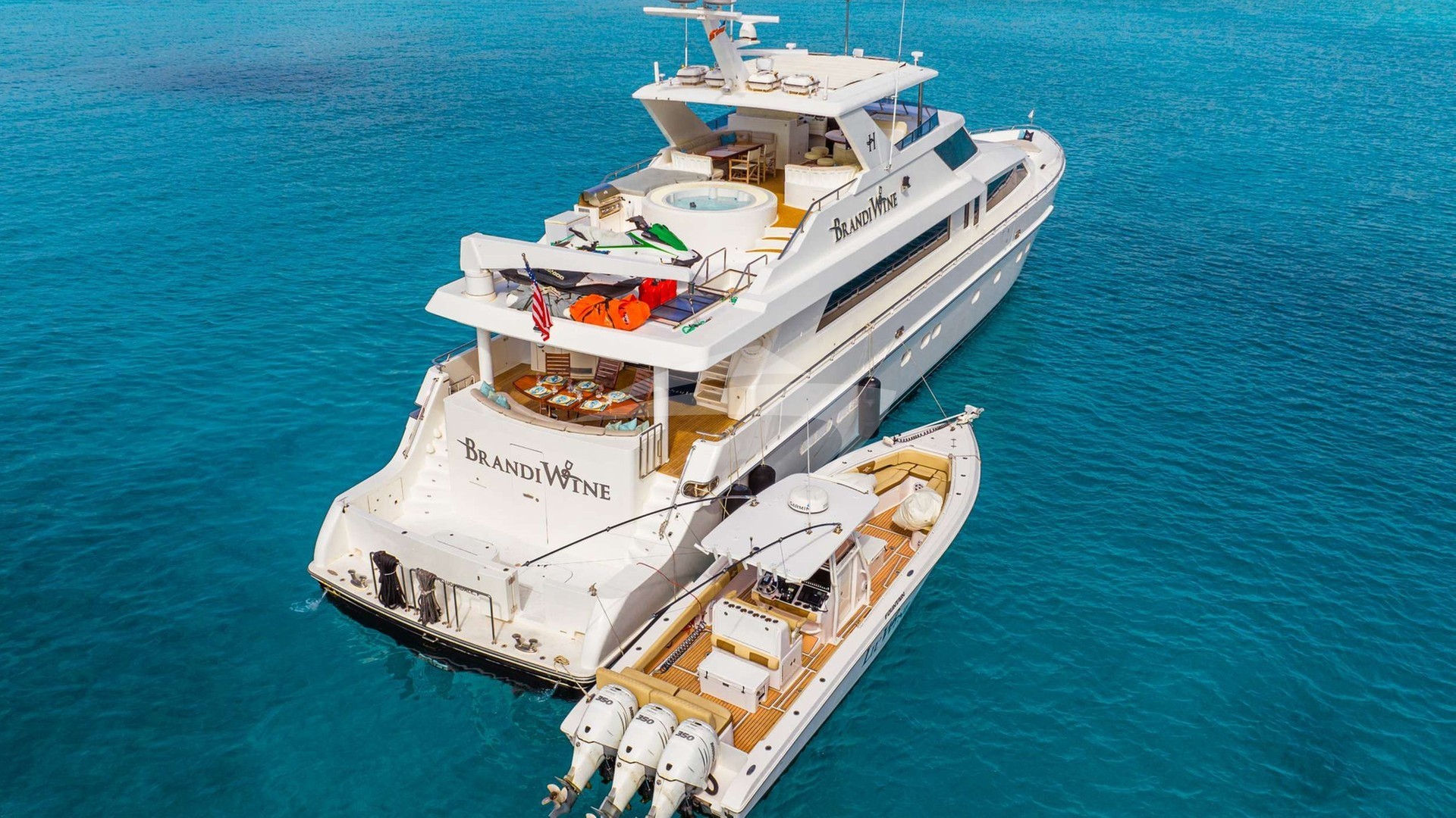 Brandi Wine Yacht Charter is a 114' superyacht built by Hargrave in 2009. She sleeps 8 and holds 5 crew and is located in Caribbean and Caribbean. She can be booked for a private luxury charter at a rate of $55,000 per week. Please check with your Denison Charter Specialist for more info.