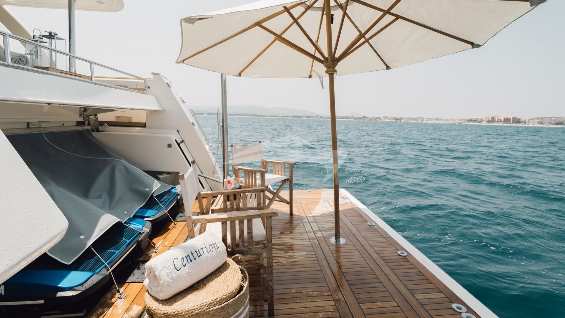 Centurion Yacht Charter is a 106' superyacht built by Custom Line in 2013. She sleeps 10 and holds 7 crew and is located in West Mediterranean and West Mediterranean. She can be booked for a private luxury charter at a rate of $101,316 per week. Please check with your Denison Charter Specialist for more info.