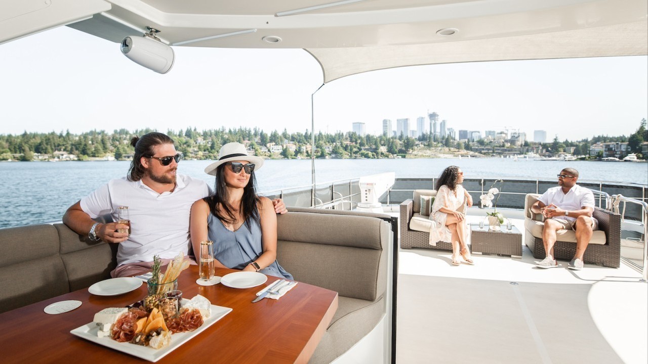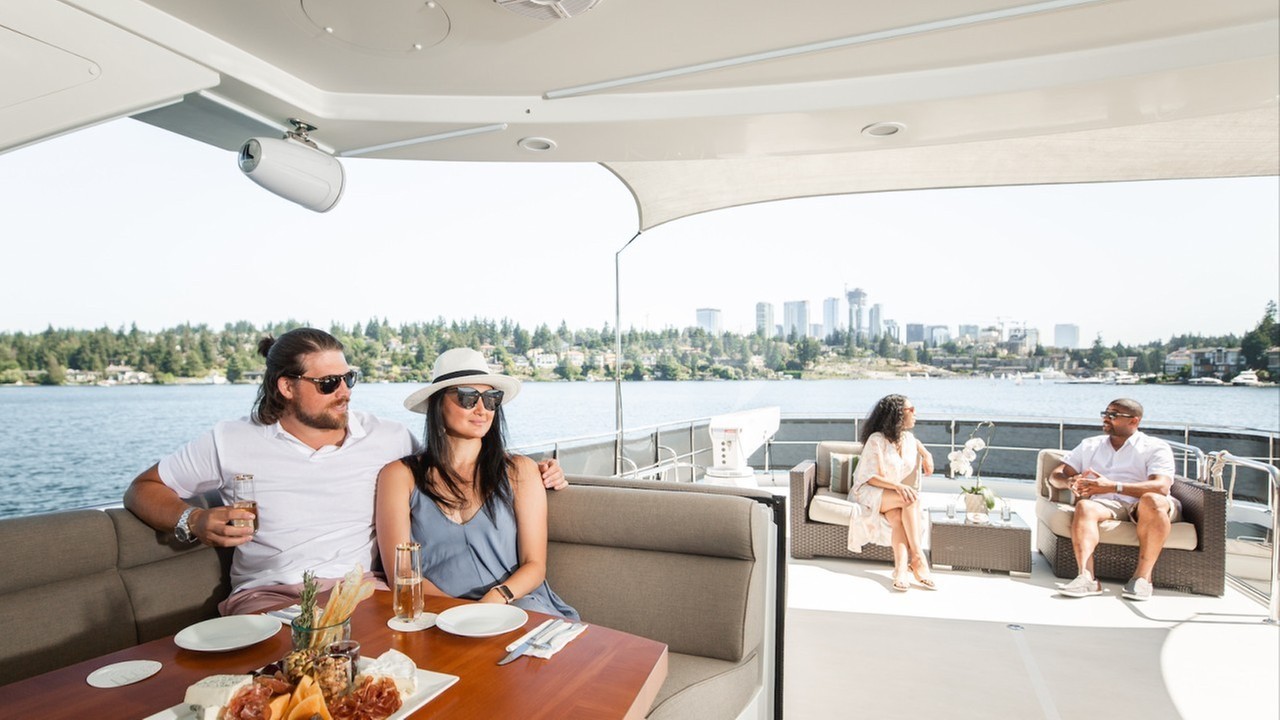 CHILLIN' is an 85’ Ocean Alexander luxury motor yacht available for charter in the Pacific Northwest based in Seattle, WA. We cruise within the greater Salish Sea, Puget Sound and San Juan Islands. We provide a traditional itinerary as well as customize the excursion for guests based upon their desires from a myriad of choices of activities and adventures. We offer day charters for corporate events, weddings, or just fun in the sun with all the water toys. Seafair on the log boom, a 4 day celebration of summer is our specialty. We are the absolute closest to hydroplanes going by at 200+ mph and Blue Angels flying immediately overhead! Reserve a day or all 4!