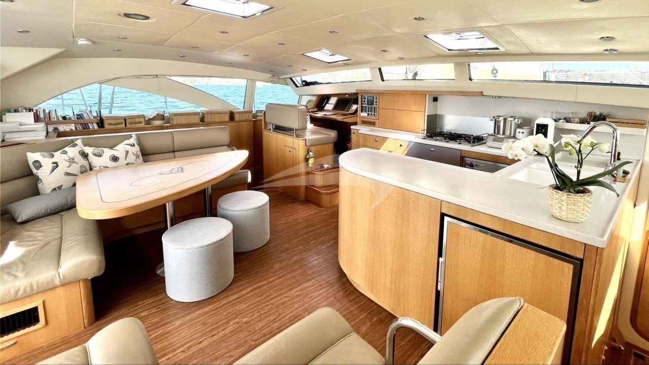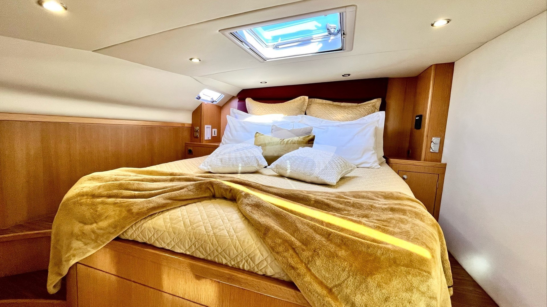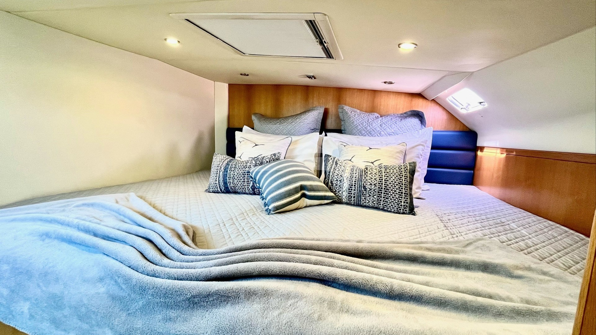 In the salon, you will find two roomy leather seating areas and the galley, where you can marvel as chef Marina creates your next 5-star meal or one of her famous cocktails – sure to put you in the holiday mood!