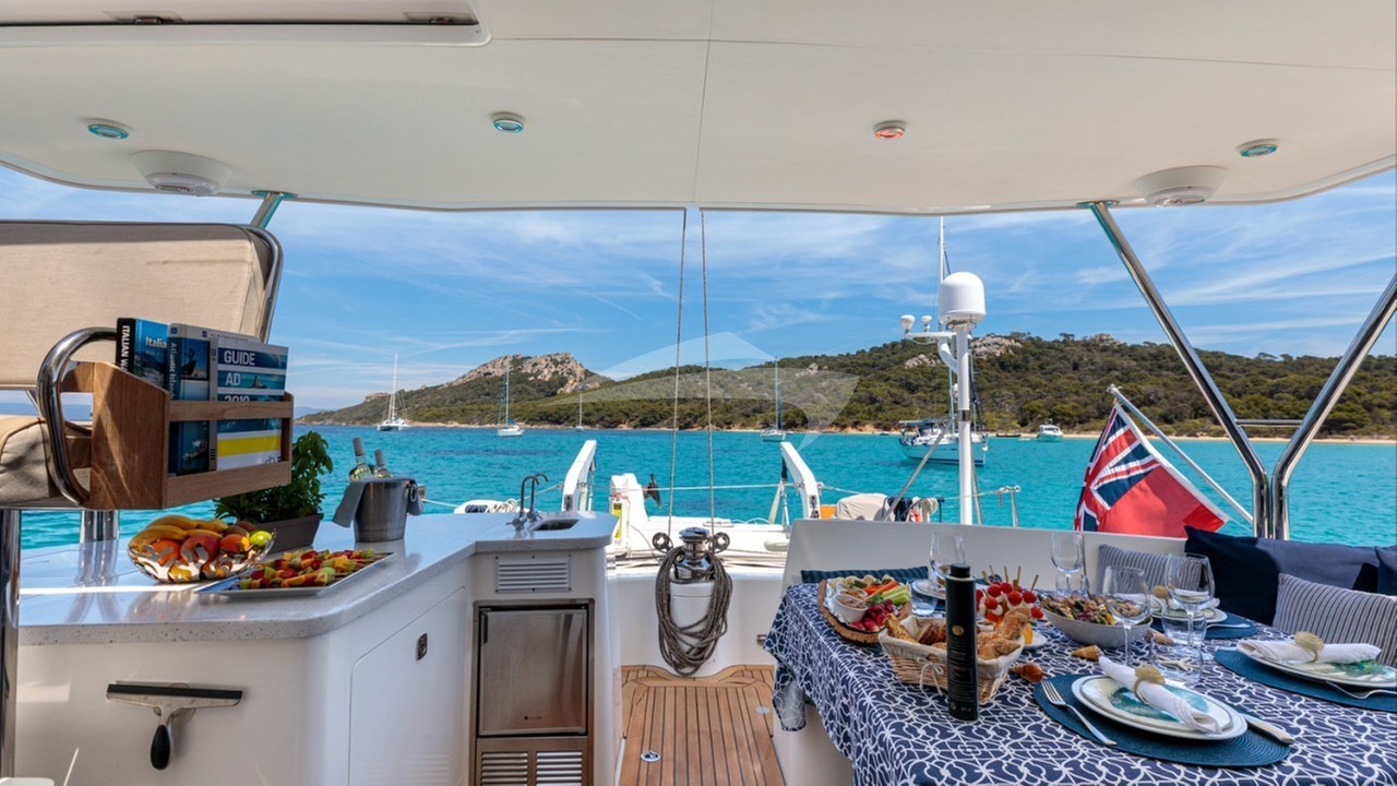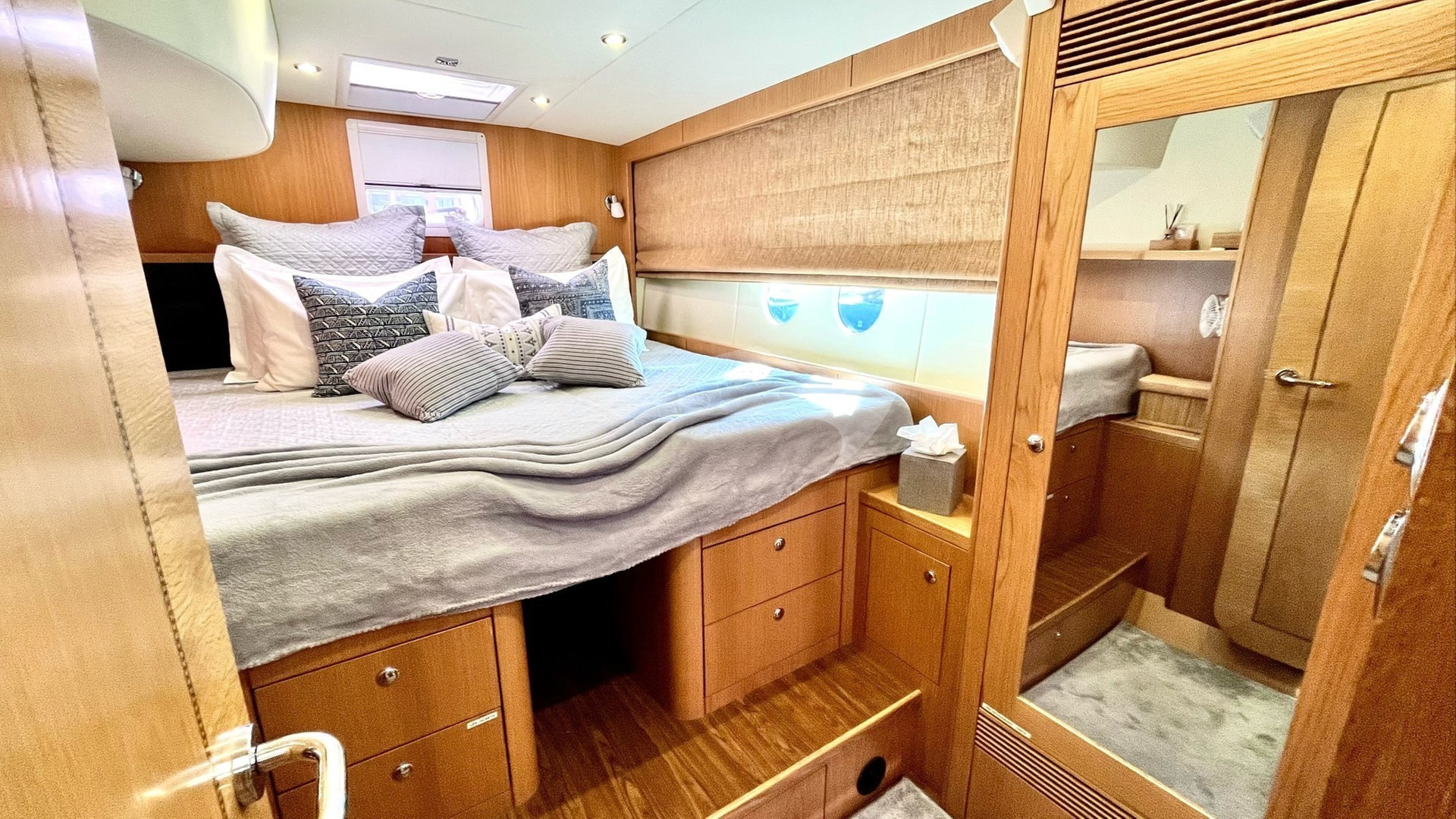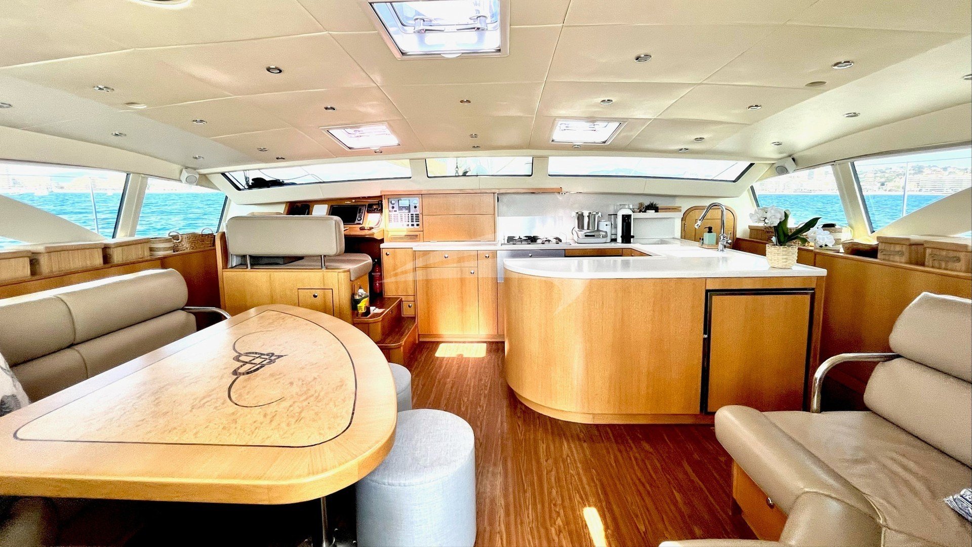 In the salon, you will find two roomy leather seating areas and the galley, where you can marvel as chef Marina creates your next 5-star meal or one of her famous cocktails – sure to put you in the holiday mood!