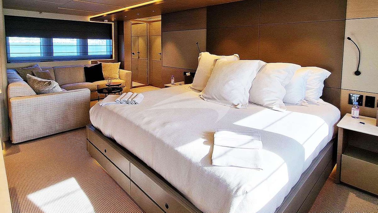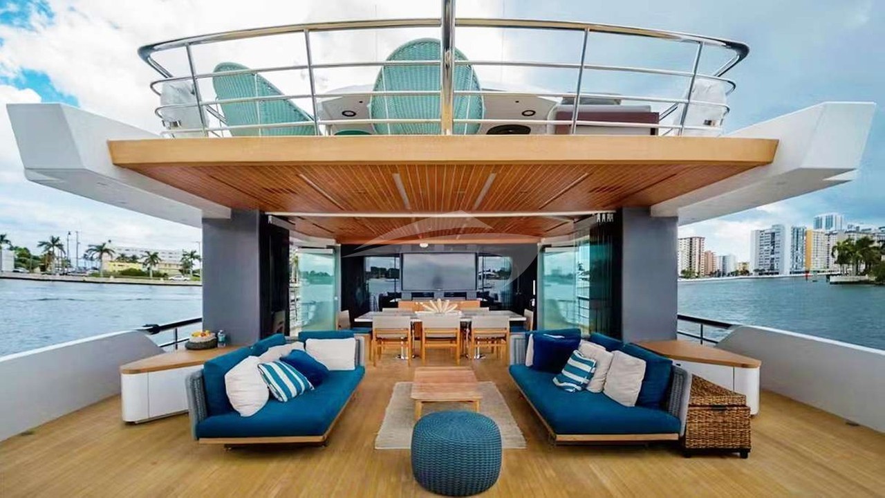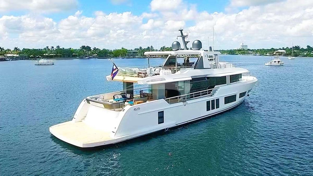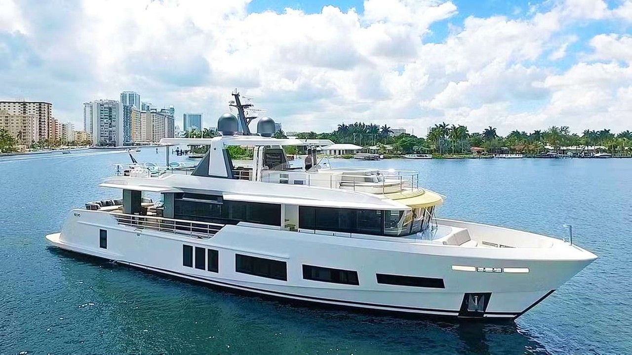 Cyra Yacht Charter is a 106' superyacht built by Custom in 2019. She sleeps 9 and holds 3 crew and is located in Caribbean, East Coast United States and Caribbean, East Coast United States. She can be booked for a private luxury charter at a rate of $106,000 per week. Please check with your Denison Charter Specialist for more info.