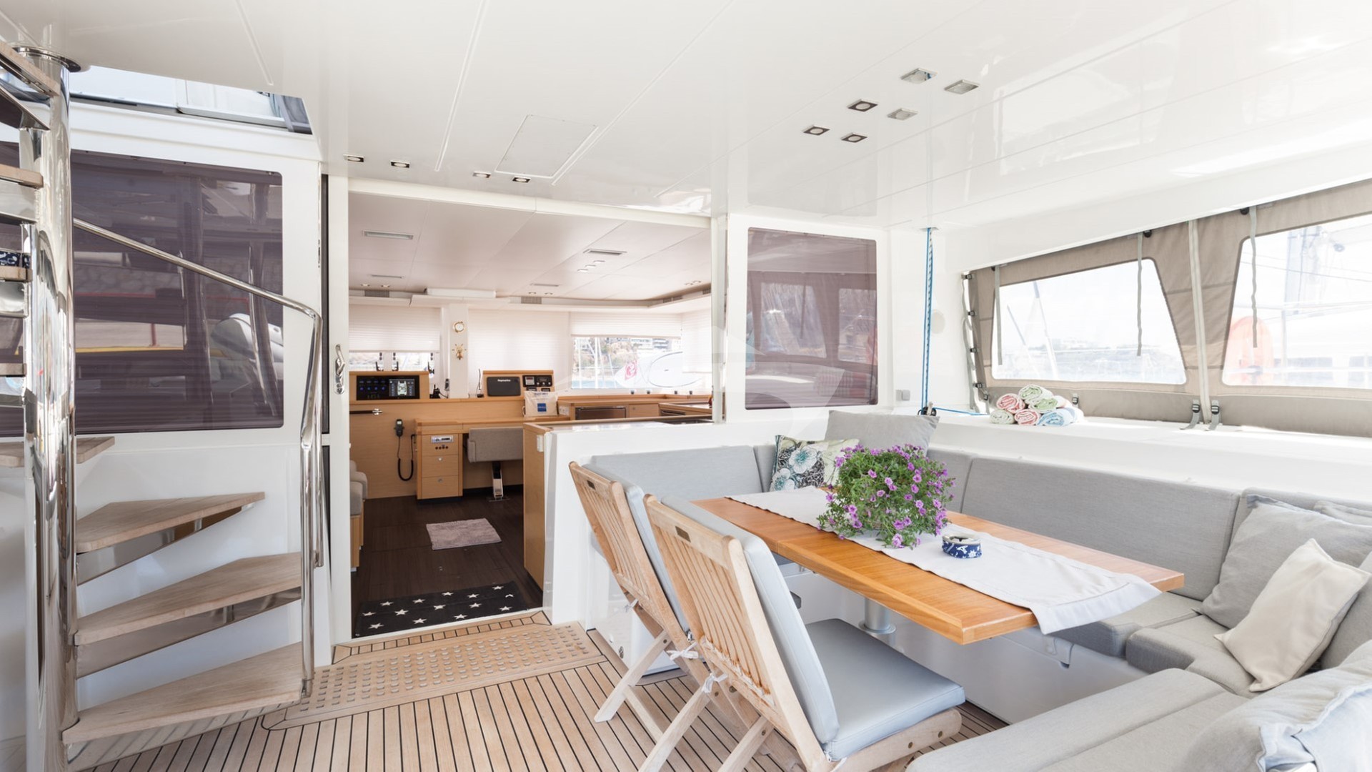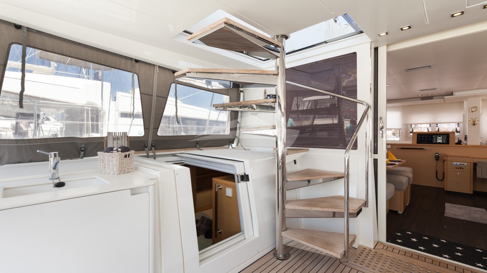 � The cockpit is fully protected from the sun and sea spray and is on the same level as the galley
